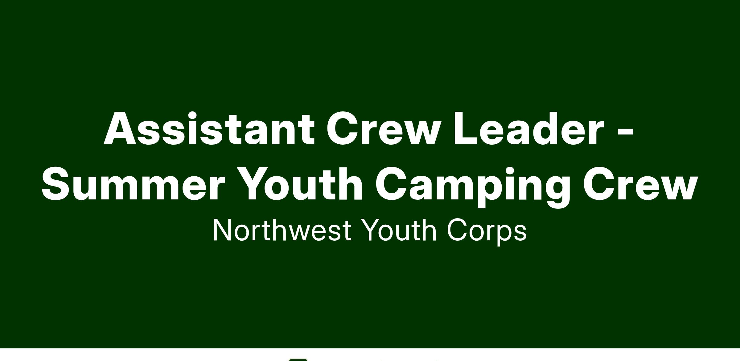 POSITION: AmeriCorps Assistant Leader (Idaho), Youth Camping Crews; seasonal