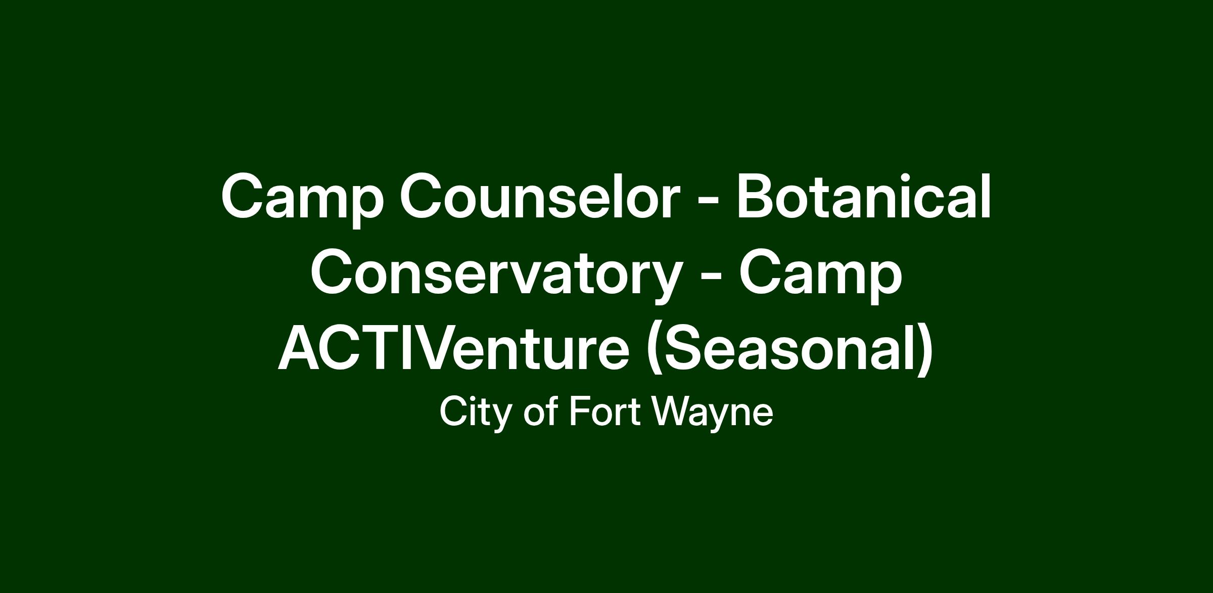 Camp Assistant Supervisor β Botanical Conservatory β Camp Activenture