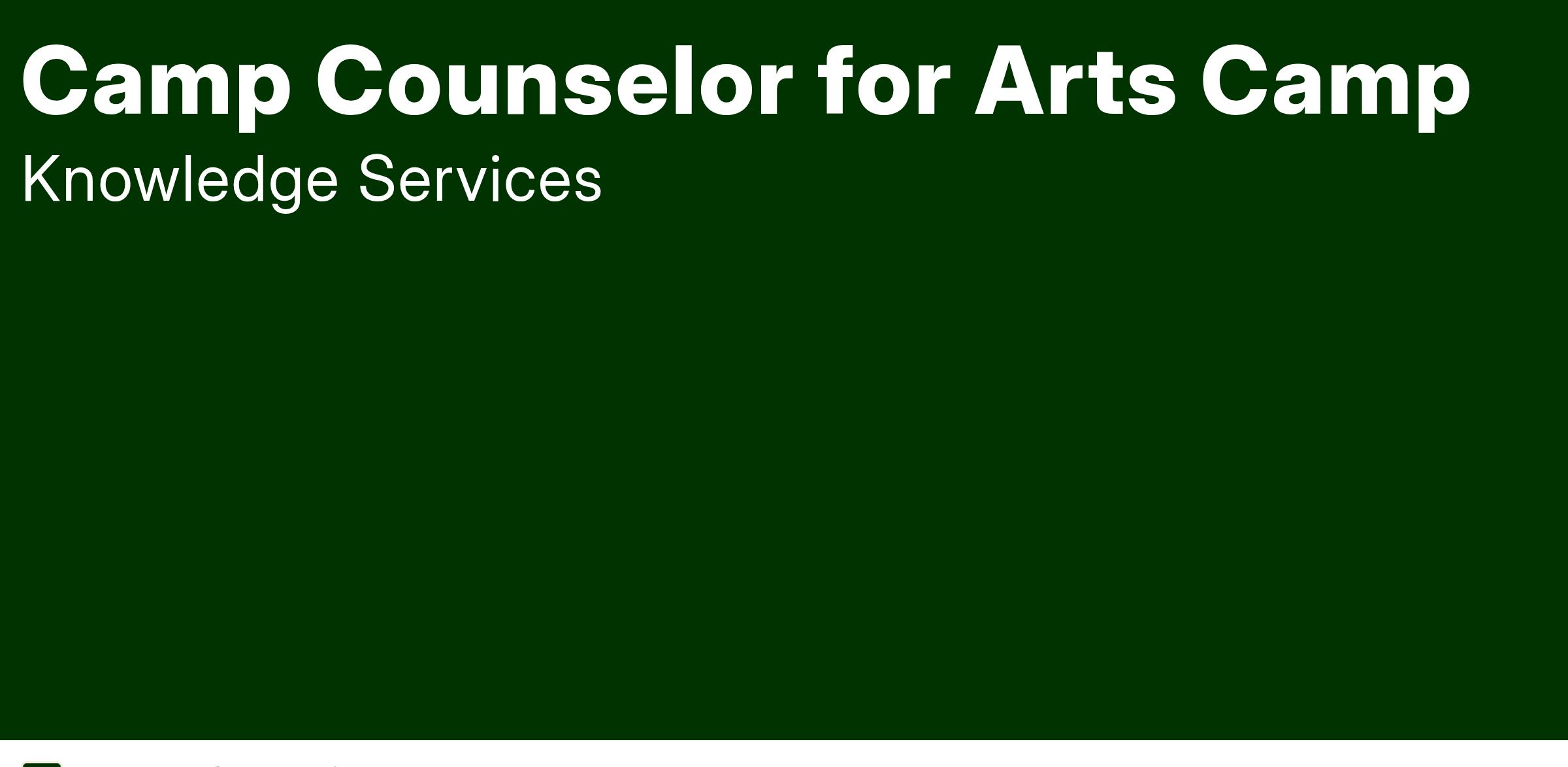 Knowledge Services is seeking a Camp Counselor for Arts Camp for a contract role through the end of July with the City of Indianapolis Department of Parks and Recreation.