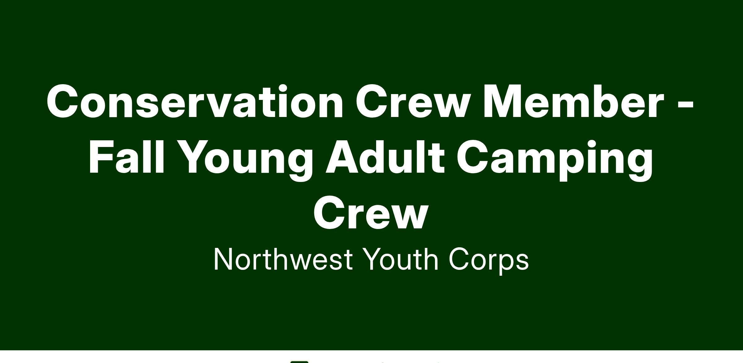 TO APPLY: Please submit an application on our website (https://nwyouthcorps.workbrightats.com) under "Apply Now", which will ask for a resume and short questionnaire, and will send you a confirmation email. For questions, please contact Zeke Zeff, Member Services Coordinator: zekez@nwyouthcorps.org. We will begin reviewing applications later this spring.