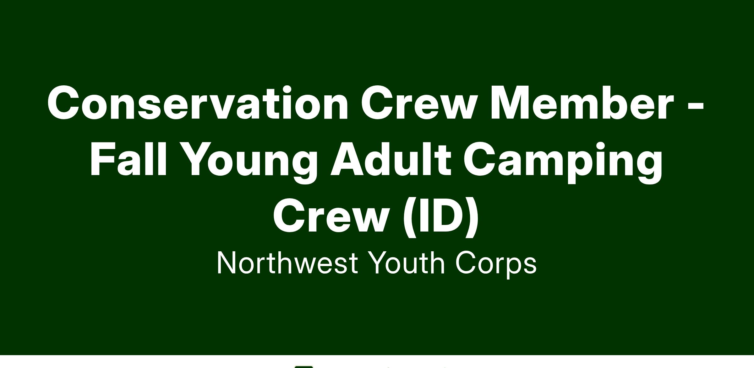 Northwest Youth Corps is seeking young adults ages 19+ to camp, travel, and work together on challenging conservation projects across Idaho.