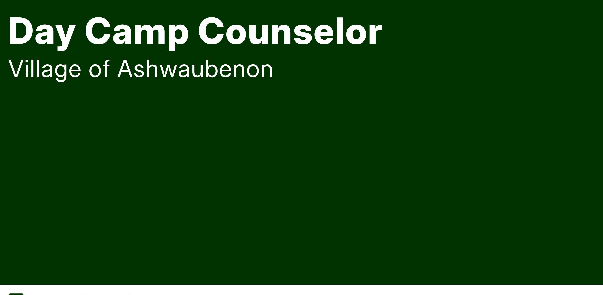 The Village of Ashwaubenon is seeking a Day Camp Counselor. Directly supervise campers and assist in the instruction of activities. Day Camp counselors are responsible for supervising and implementing preplanned activities on and off site. The rate of pay for this position is $16.46 - $17.71 hourly.