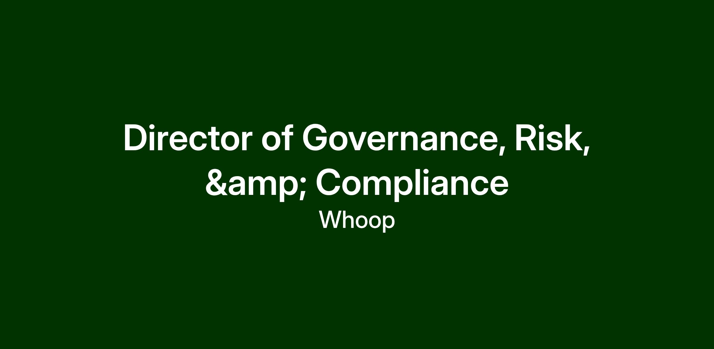 This is a senior leadership role responsible for strengthening and expanding a world-class GRC function that enables WHOOP to move quickly while maintaining the highest standards of security, privacy, and regulatory compliance.