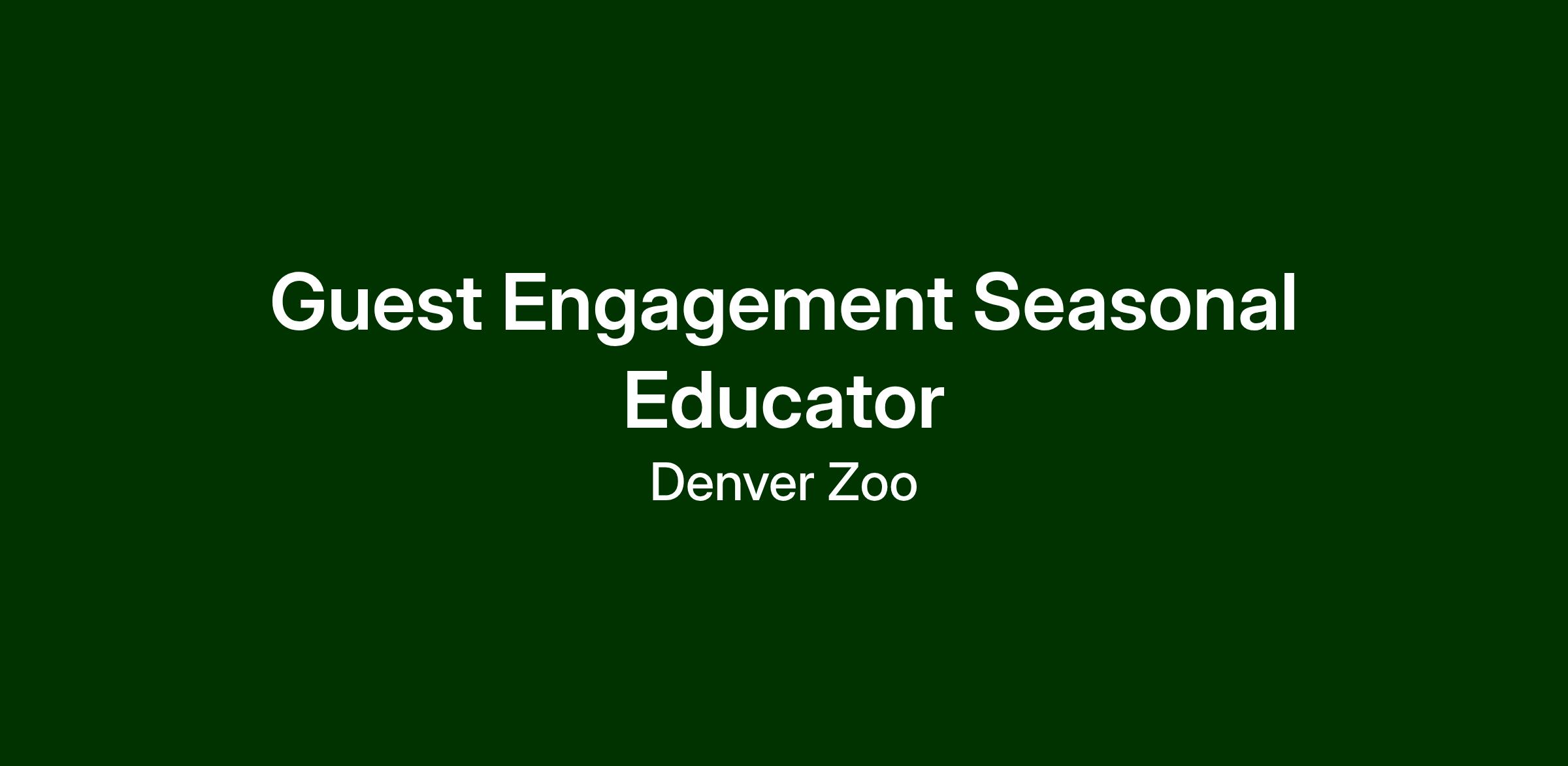 Denver Zoo Conservation Alliance is a leader in animal care, wildlife conservation, and education. We are passionate about our commitment to excellence in support of our mission of Inspiring Communities to Save Wildlife for Future Generations. The Guest Engagement Seasonal Educator advances the mission of Denver Zoo Conservation Alliance by delivering Guest Engagement public programming in Animal Experience areas, Conservation-based educational programs, and interpretive talks and presentations. Application deadline: April 7, 2026. Please apply through our careers page, under the about section of our web page. www.denverzoo.org