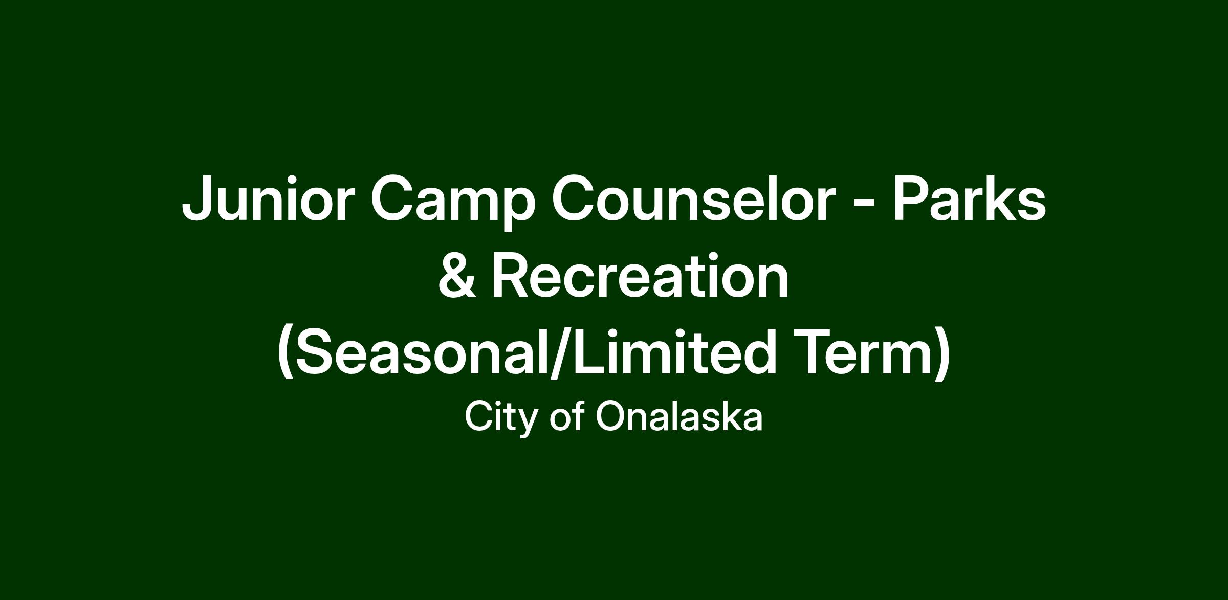 The City of Onalaska is seeking to hire Junior Camp Counselors. Scheduled hours vary for each program. An employee in this position is responsible for the supervision, instruction and safety of all participants, program staff, and the equipment and amenities associated with a specific program.