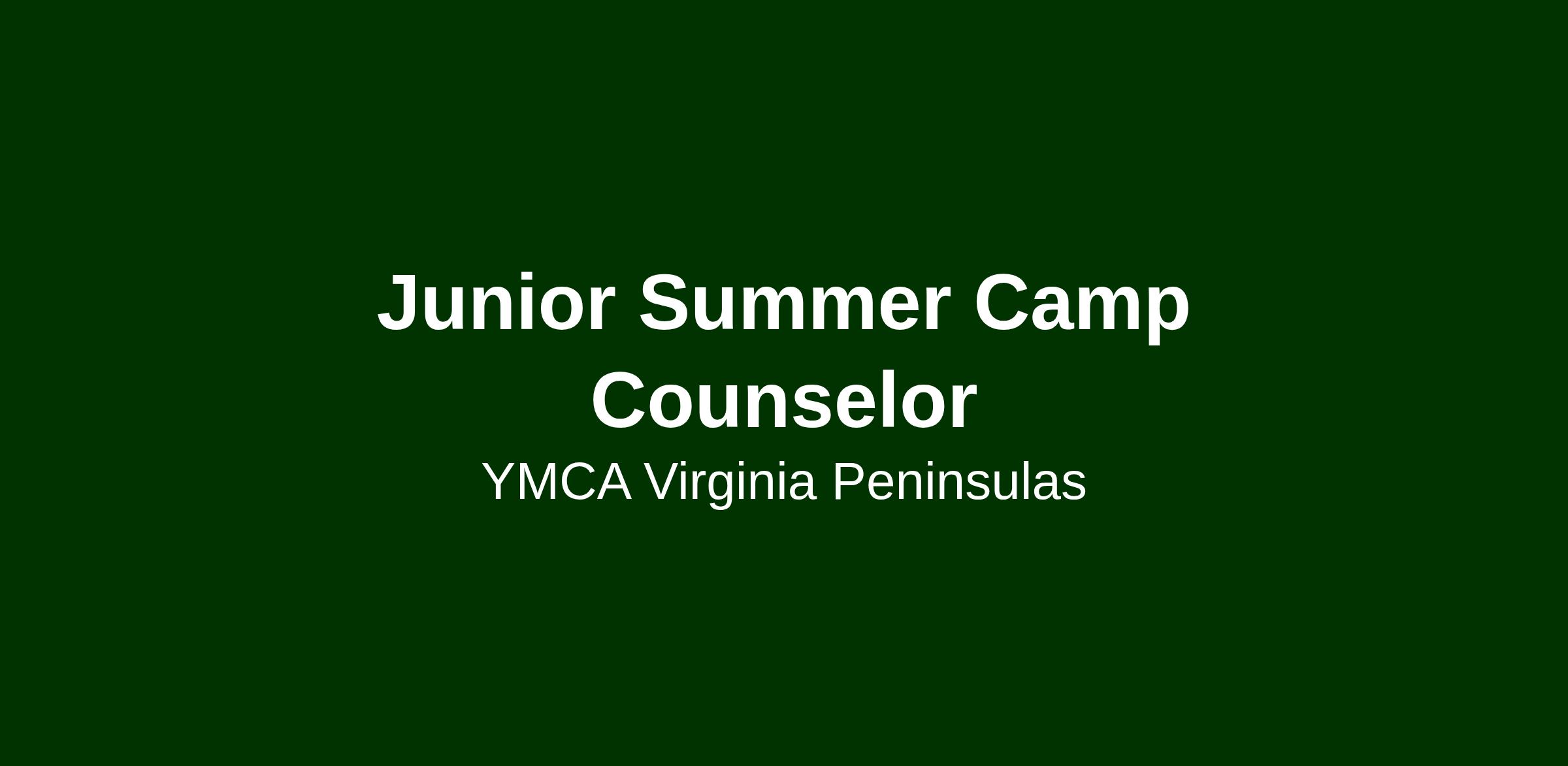 General Function:Under the supervision of the designated supervisor, and in harmony with the mission and purpose of the established policies and goals of the YMCA of the Virginia Peninsulas, the Junior Summer Camp Counselor is responsible for assisting the Summer Camp Counselor with the supervision, health and safety of an assigned group of children between the ages of 5-12 years. With an emphasis on ensuring the highest quality service to members and guests, the Junior Summer Camp Counselor will work with all staff to welcome, connect, support, and engage all members, guests, and staff.