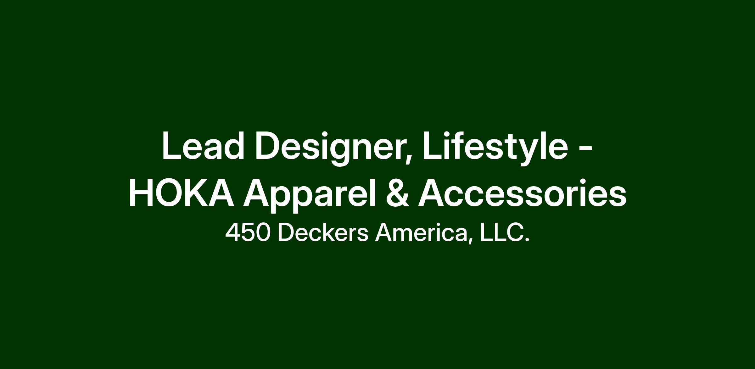 Job Title: Lead Designer, Lifestyle - HOKA Apparel & Accessories
