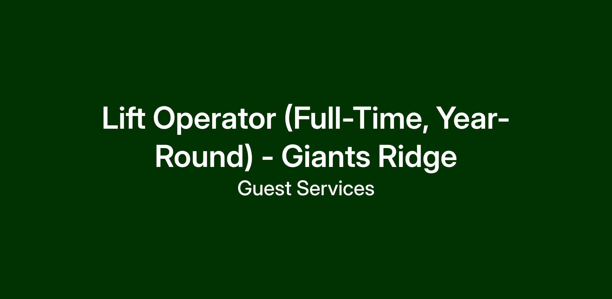 Now Hiring: Full-Time, Year-Round Lift Operators at Giants Ridge!