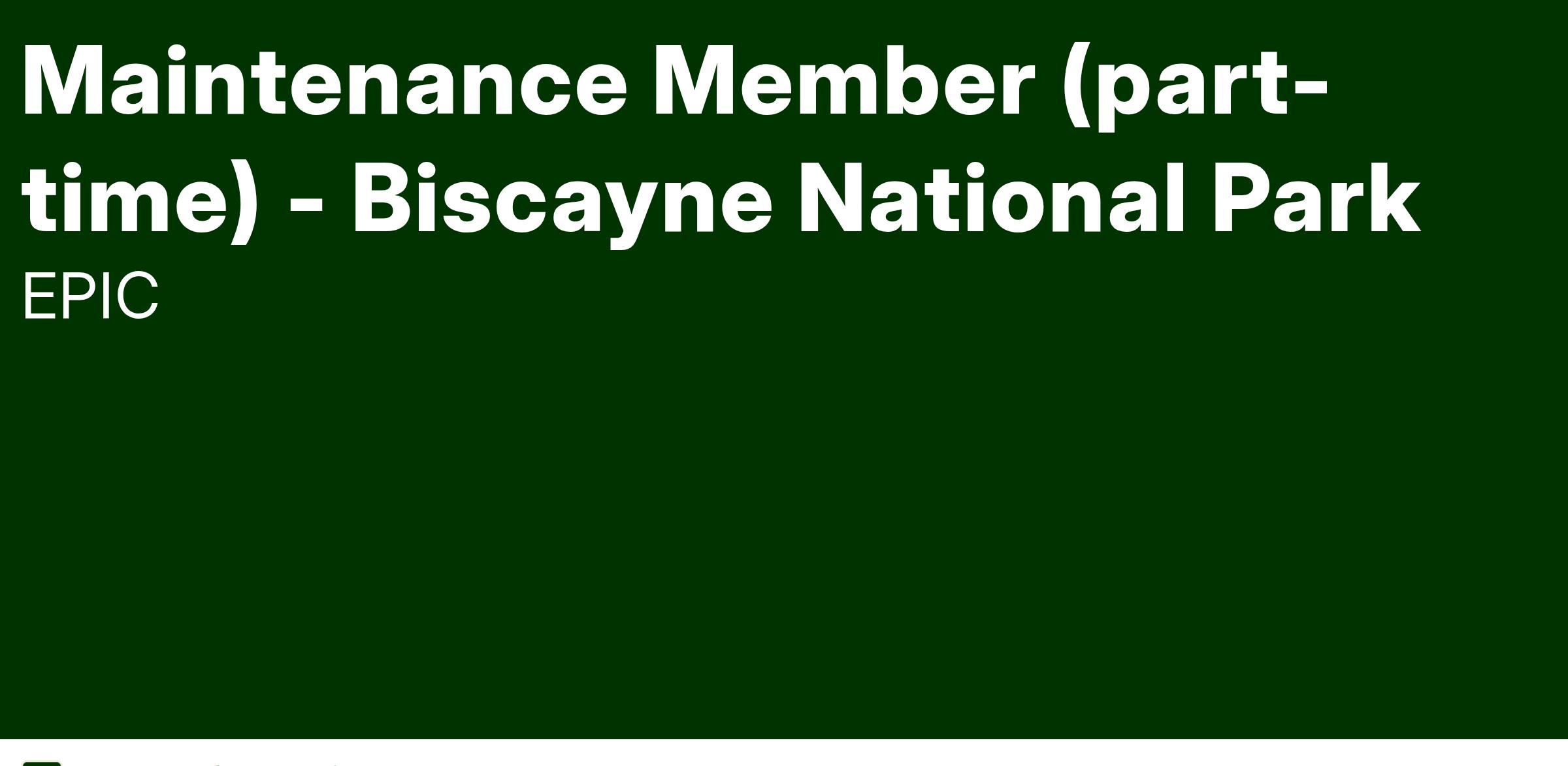 American Conservation Experience, a nonprofit Conservation Corps, in partnership with the National Park Service is seeking ONE part-time Maintenance Member to contribute to visitor ready facilities through grounds and building maintenance projects alongside Biscayne National Park Staff.