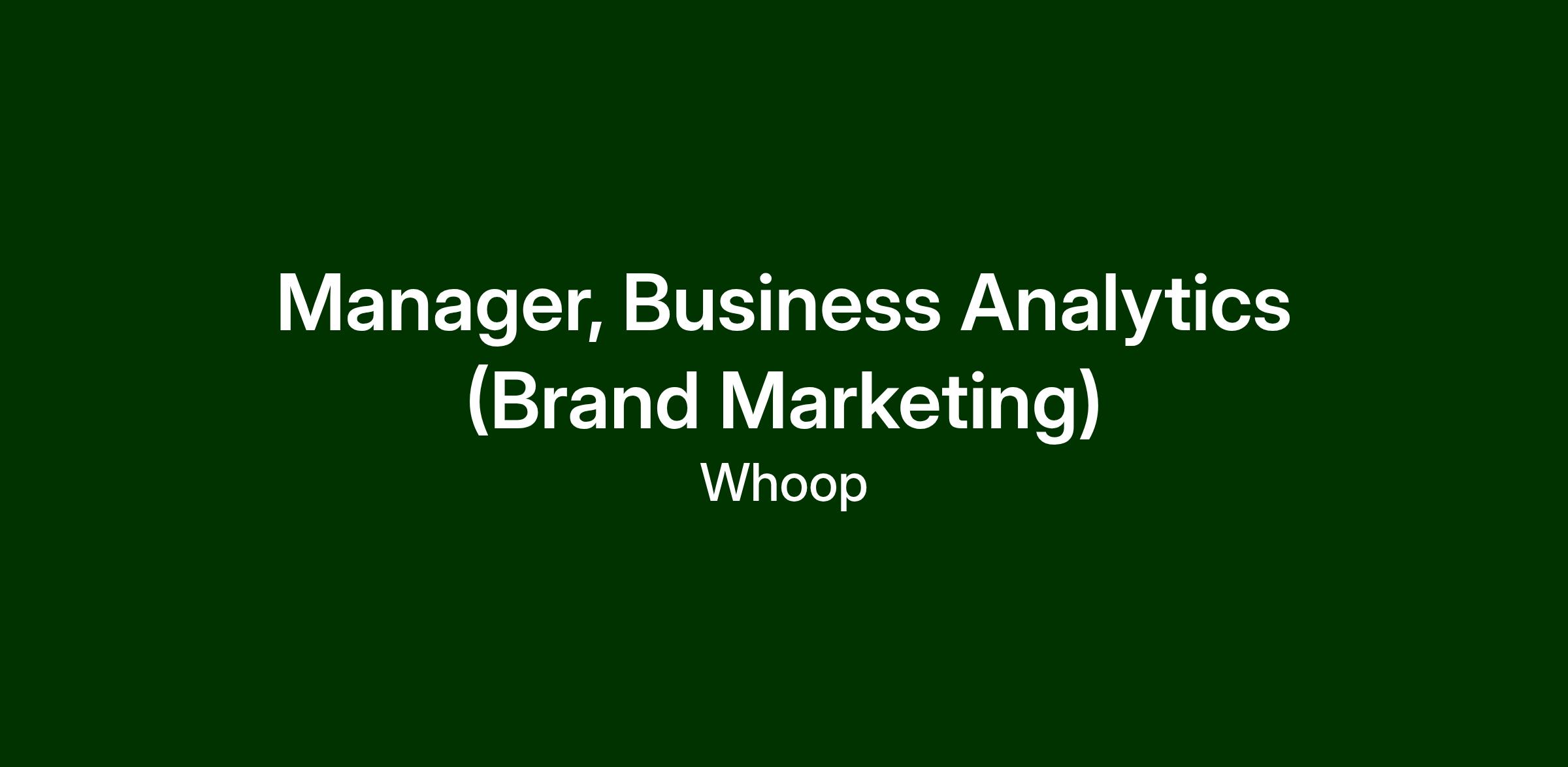 WHOOP empowers our members to reach their highest potential through a deeper understanding of their health and performance. As we expand our global reach and introduce WHOOP to millions more people, brand investment plays a critical role in driving durable, long-term growth. We are hiring a Manager, Business Analytics to partner with our Brand Marketing team to architect how we measure and optimize global awareness, consideration, perception, and upper-funnel impact.