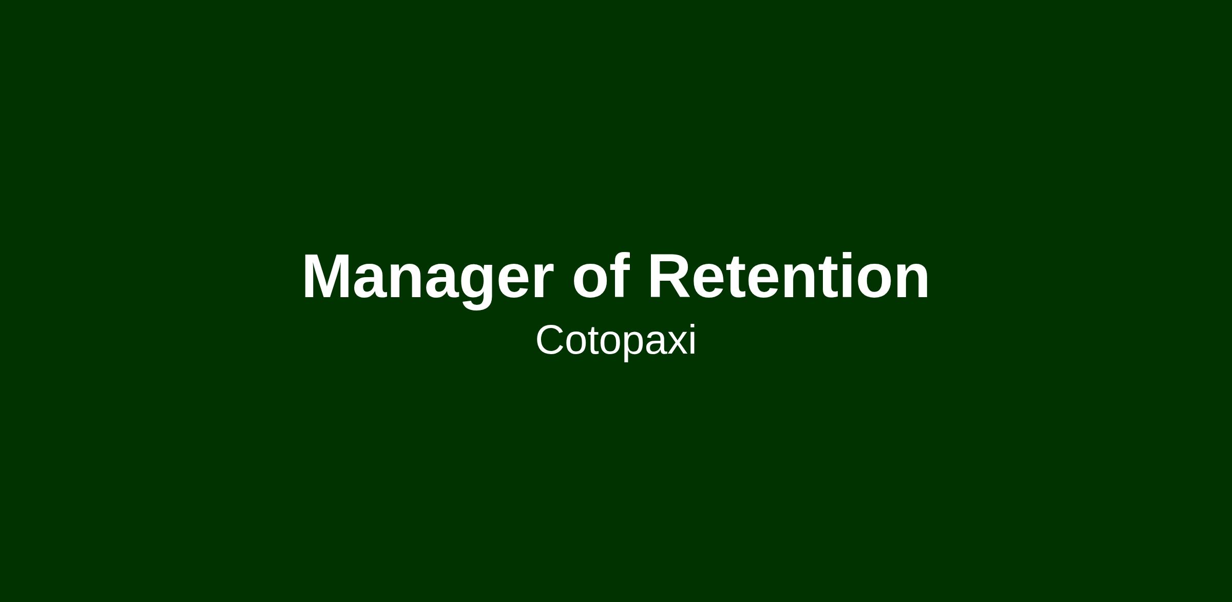 The manager of Retention plays a key role in turning customers into lifelong supporters of Cotopaxi - driving repeat purchase, engagement, and loyalty while advancing our mission to do good in the world. This role sits at the intersection of strategy and execution, shaping how customers experience Cotopaxi across every stage of their journey.