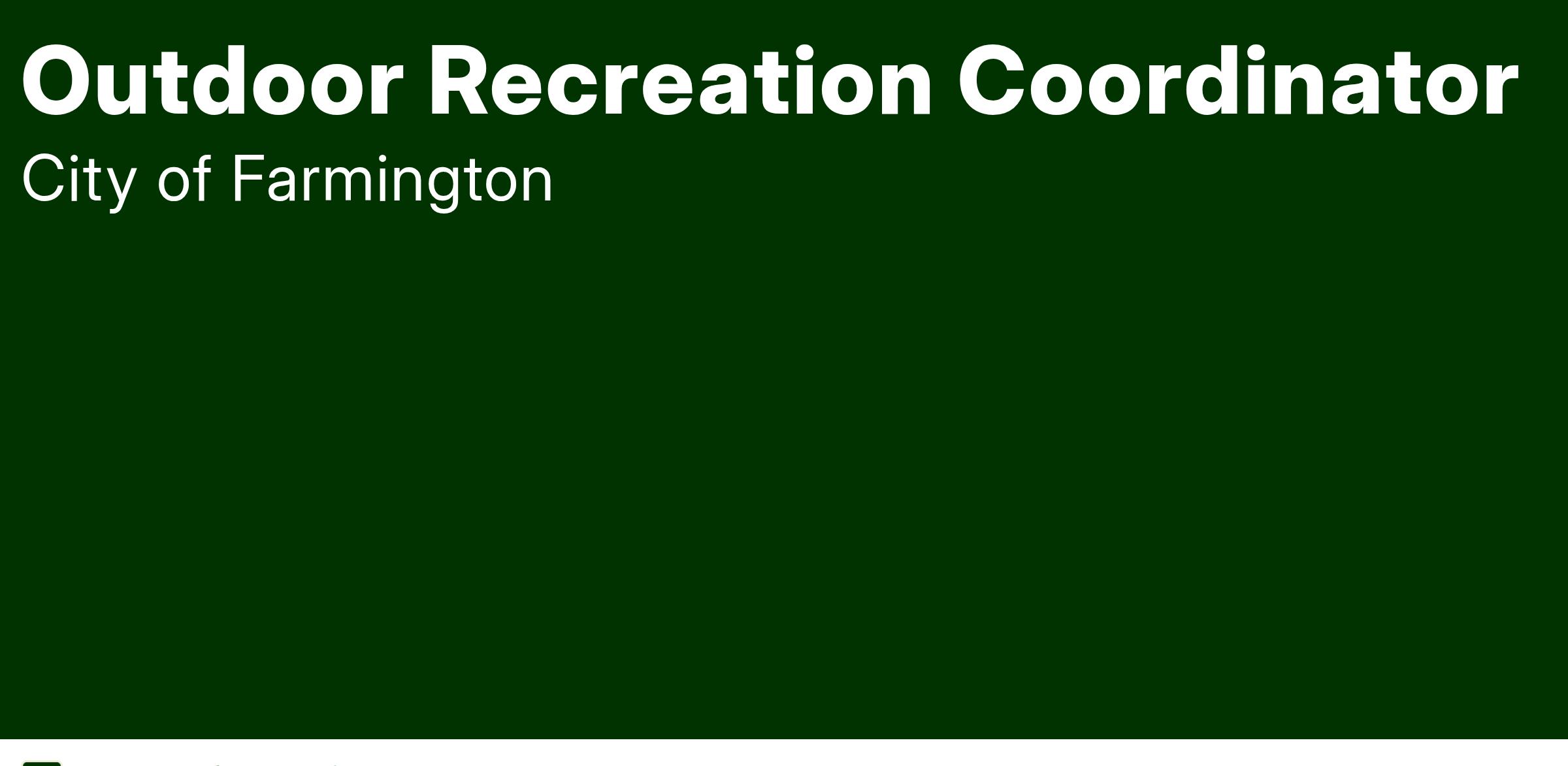 The City of Farmington is seeking a dynamic, highly motivated individual with a passion for the outdoors and being active to continue the growth of the ORII program and the culture it seeks to create.