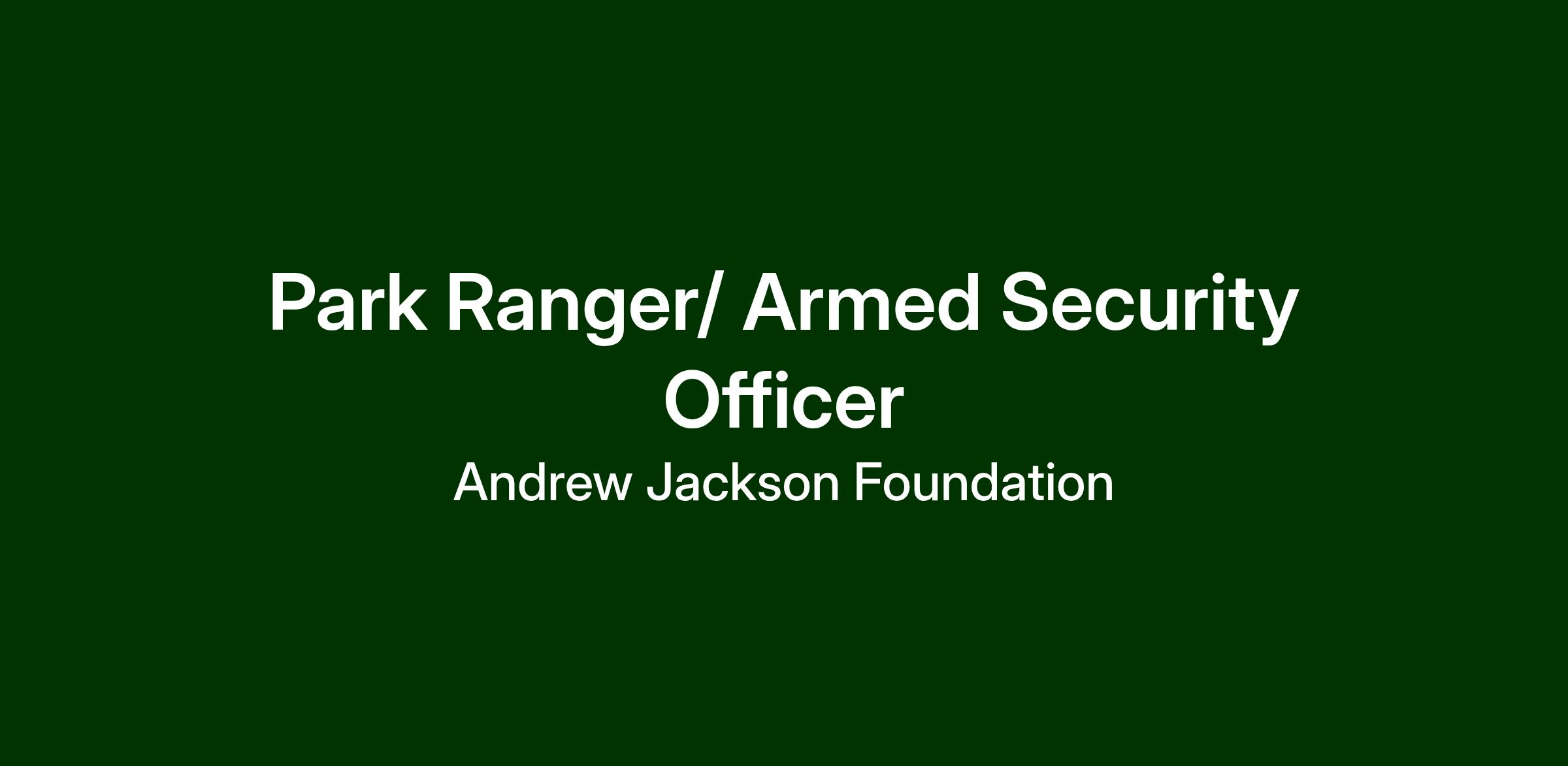 Now Hiring: Park Ranger/ Armed Security Officer