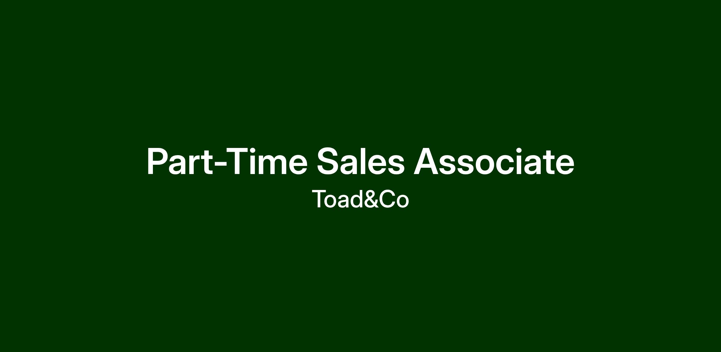 Were hiring a sales associate to join our team at Toad&Co in Portland. This person will be a key member of our retail sales team. This is a part-time position and weekend availability is required.