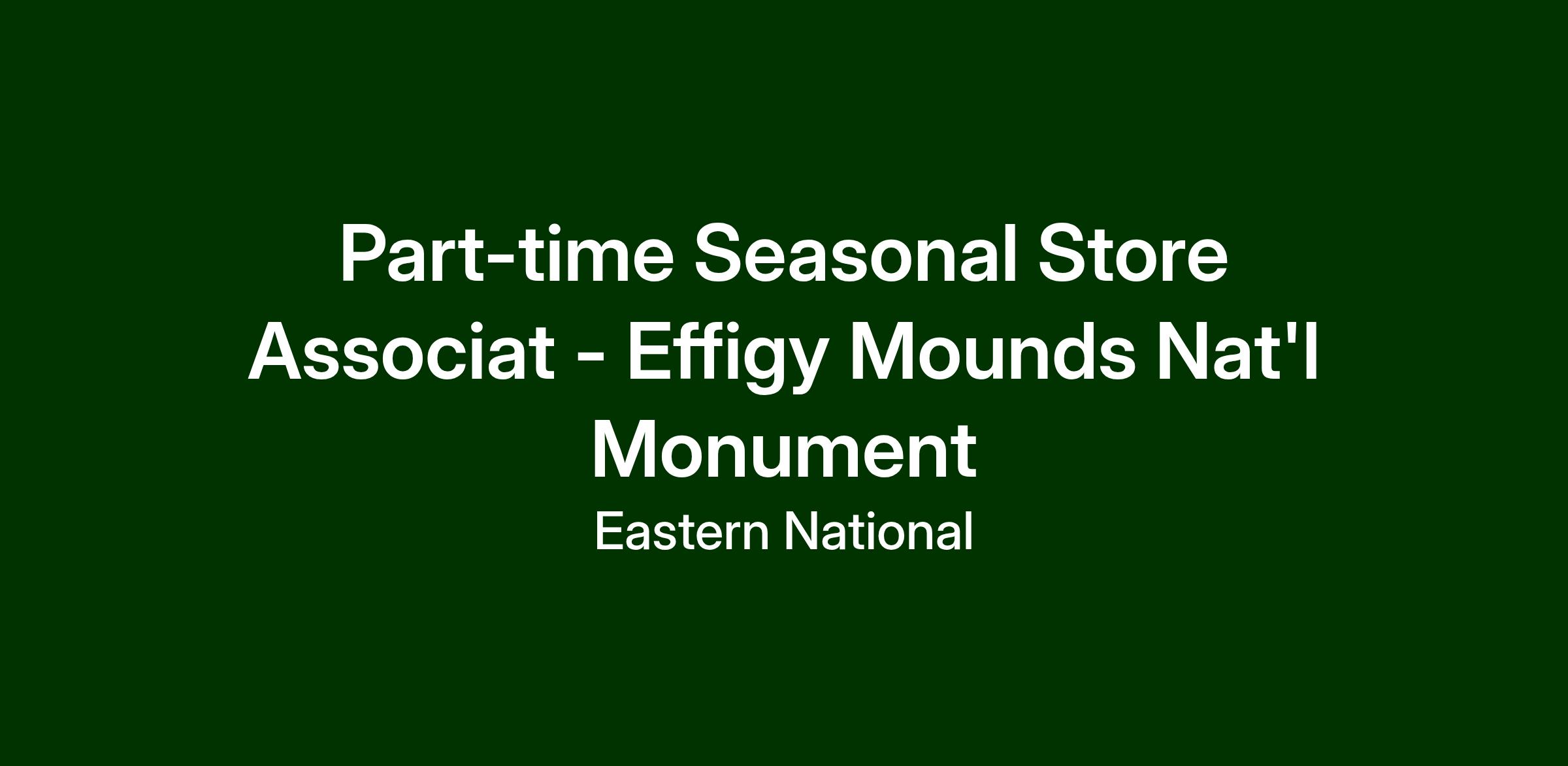 Be a part of something remarkable as a part-time seasonal Store Associate at Effigy Mounds National Monument in Harpers Ferry, IA! Season runs until October.