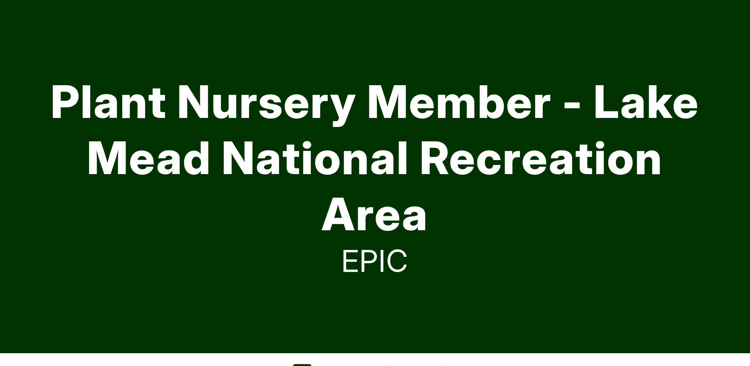 The ACE member will collaborate with NPS staff in work activities, primarily native plant propagation at the Lake Mead NRA native plant nursery and out-planting native plants, salvage and seed collection. Work will include assisting in propagation and care (including weeding and irrigation) of plants at the nursery, mixing soil and filling plant containers, documenting propagation protocols, moving heavy plant containers around yard, pest control, assisting in maintenance of facility, seed collection and data management, and installing plants at restoration sites.