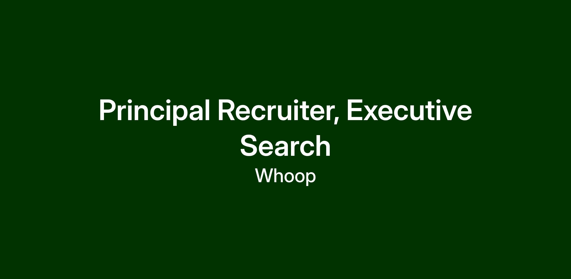 WHOOP is hiring a Principal Recruiter, Executive Search to lead and scale executive hiring across the organization. This role will serve as a strategic talent advisor to senior leadership, driving the identification, engagement, and hiring of transformative leaders who will accelerate WHOOP’s growth and impact. The Principal Recruiter will own end-to-end executive search strategy, elevate our talent bar, and ensure a high-touch, high-impact candidate experience that reflects WHOOP’s commitment to high performance.