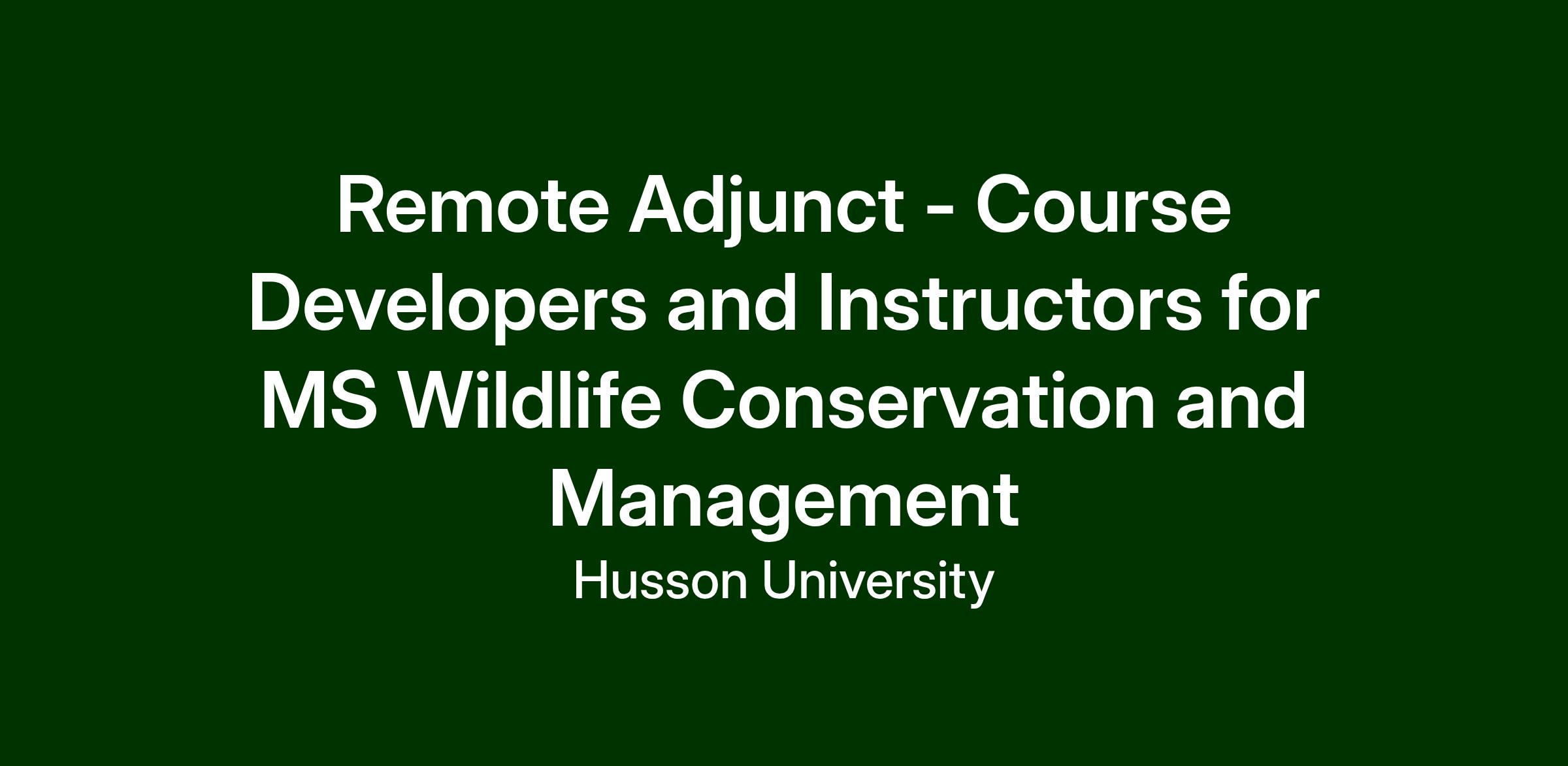 Husson University is seeking dynamic individuals to develop and teach online courses for a new master’s degree in Wildlife Conservation and Management. Online course developers and instructors are content experts who focus on providing an elite educational experience for learners to improve their skill level and knowledge. Course developers collaborate with instructional designers and leadership to define expectations throughout the course build process.