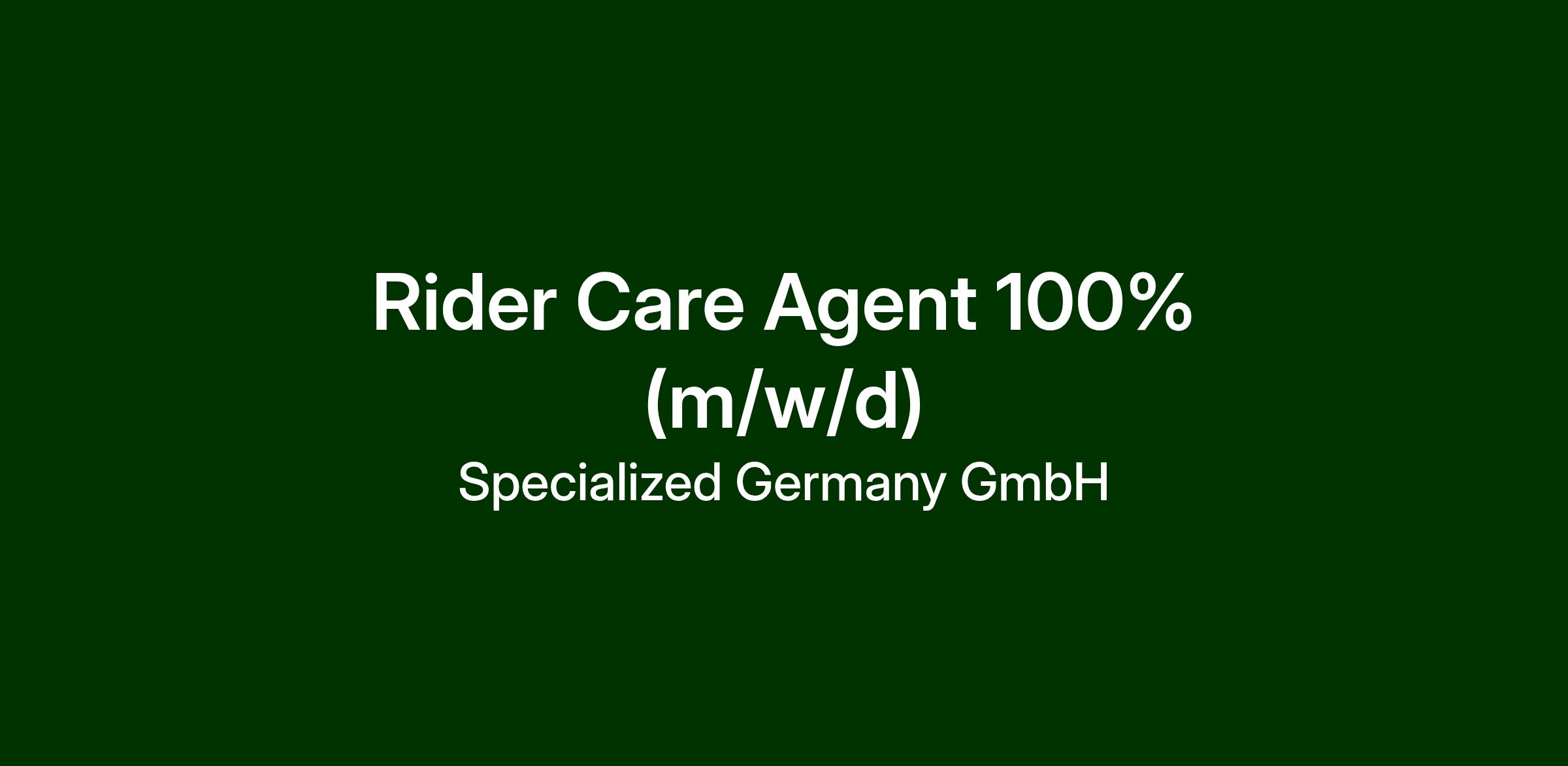 Zur Verstärkung unseres Rider Care Teams in Deutschland suchen wir ab sofort eine motivierte und serviceorientierte Persönlichkeit als Rider Care Agent, die mit dem deutschen Fahrradmarkt vertraut ist und eine große Portion Leidenschaft für Bikes mitbringt. Das Rider Care Team unterstützt die Rider entweder direkt oder in Zusammenarbeit mit Fachhandelspartnern. Die Wahrnehmung des Riders, der mit einem Rider Care Agenten interagiert, hat einen direkten Einfluss auf den Erfolg von Specialized. Du ermöglichst starke zwischenmenschliche Beziehungen in den entscheidenden Momenten - per Chat, Telefon und Ticketsystem.