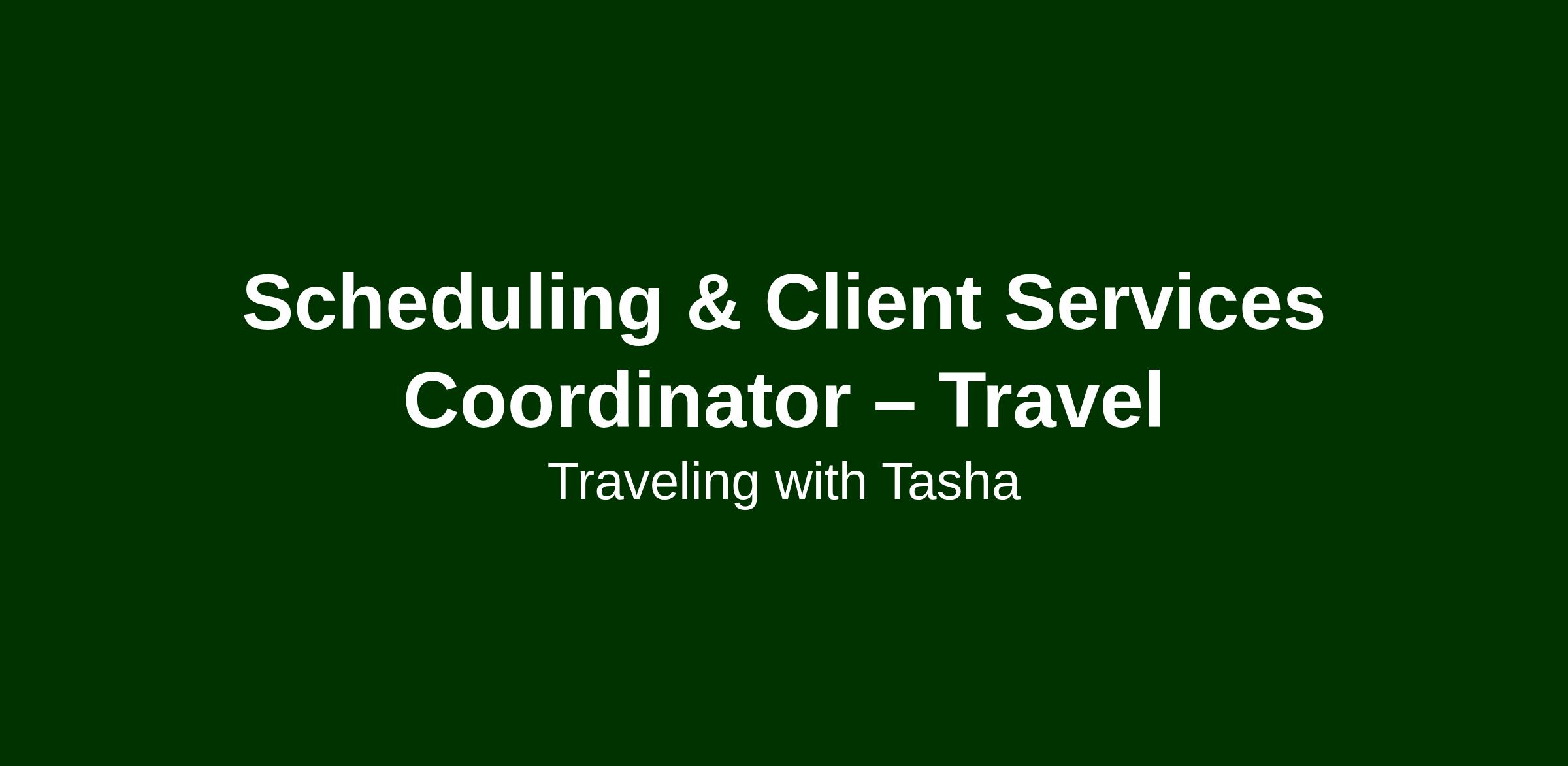 We are seeking a Scheduling & Client Services Coordinator to assist with organizing and coordinating travel-related reservations. This remote role centers on communication, scheduling, documentation accuracy, and delivering a positive client experience.
