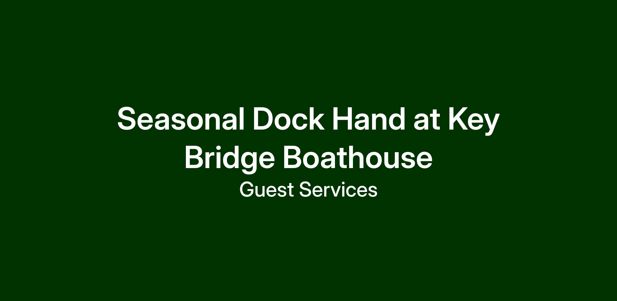 Key Bridge Boathouse, managed by Guest Services, Inc., is now hiring seasonal dock hands for the 2026 season. The season runs from April through October and we are open 7 days a week. The dock hand position is part-time and all staff are required to work at least one day a weekend as well as the summer holidays. If you love working outdoors and helping guests, this is a great opportunity for you! Apply today to join our All-Star Team!Job Description: