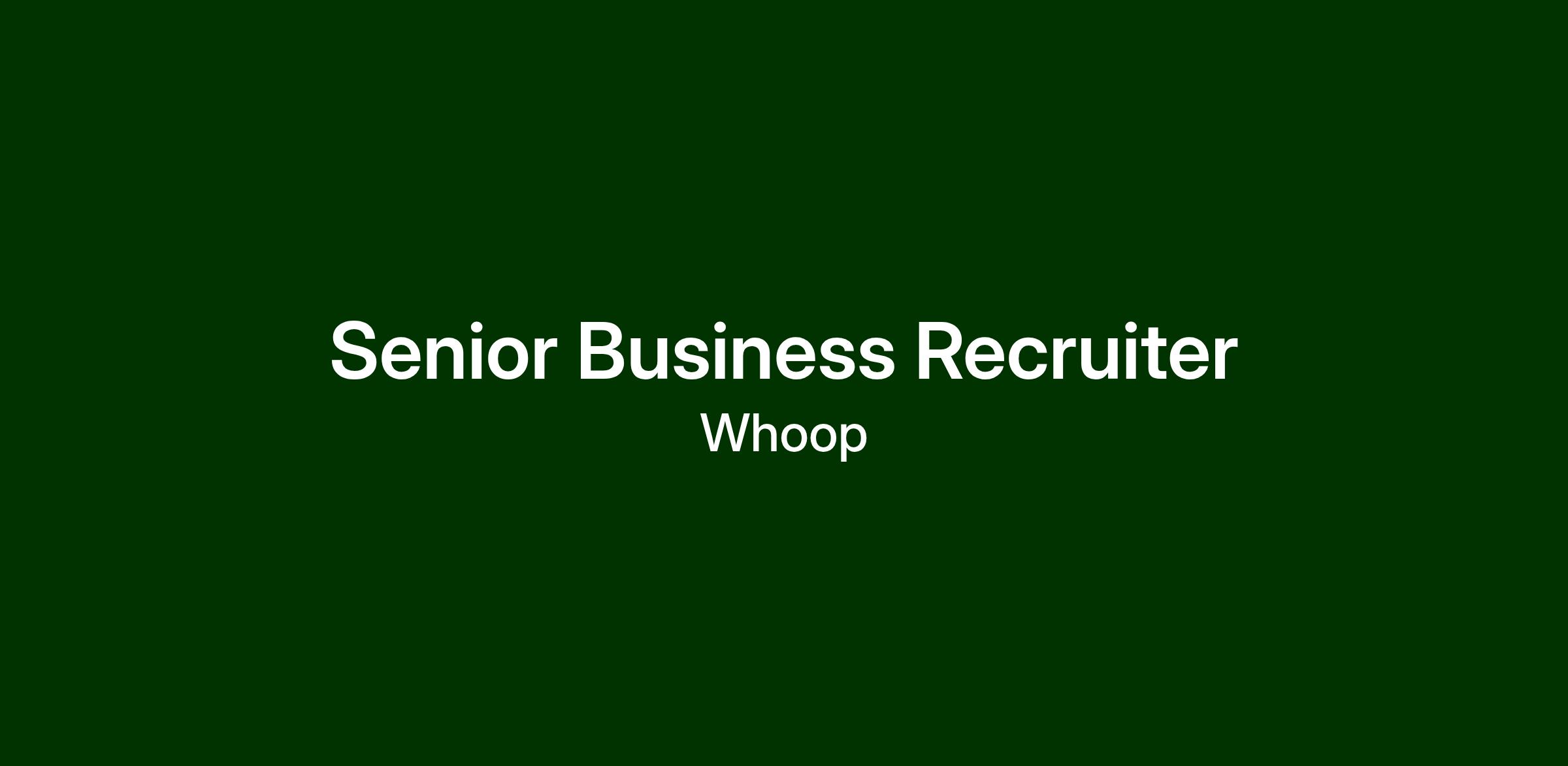 WHOOP is hiring a Senior Business Recruiter to accelerate global growth across critical business functions. This role will play a central part in scaling the organization through a combination of high-volume hiring, complex and niche searches, and select executive-level engagements. The ideal candidate is a strategic talent partner and execution-focused operator who thrives in ambiguity to efficiently identify and hire exceptional talent in competitive markets.