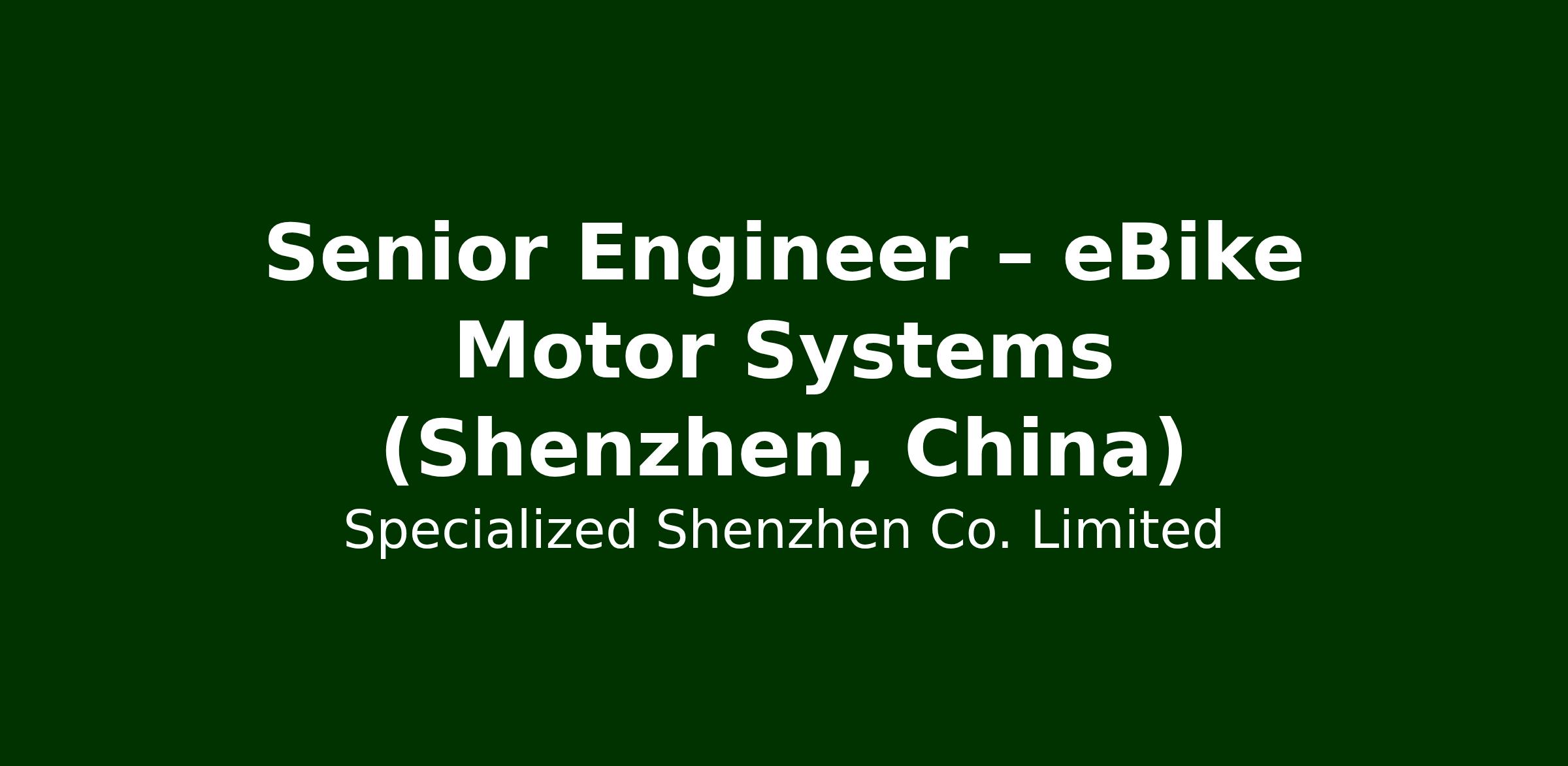 Senior Engineer – eBike Motor Systems (Shenzhen, China)