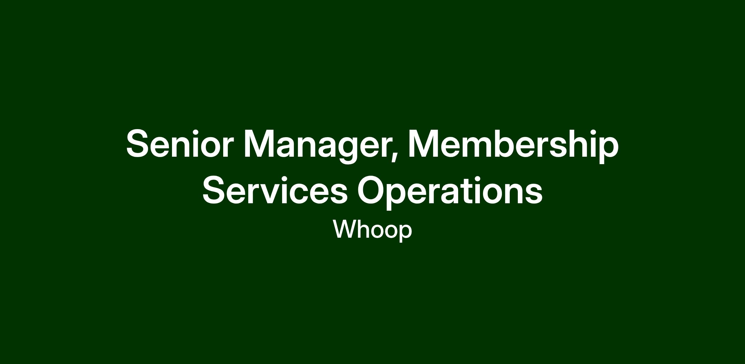 WHOOP is hiring a Senior Manager of Membership Services Operations to drive operational excellence while amplifying the member experience through a hospitality-first mindset. Reporting to the Director of Membership Services Operational Excellence, this leader will translate the Membership Services vision —