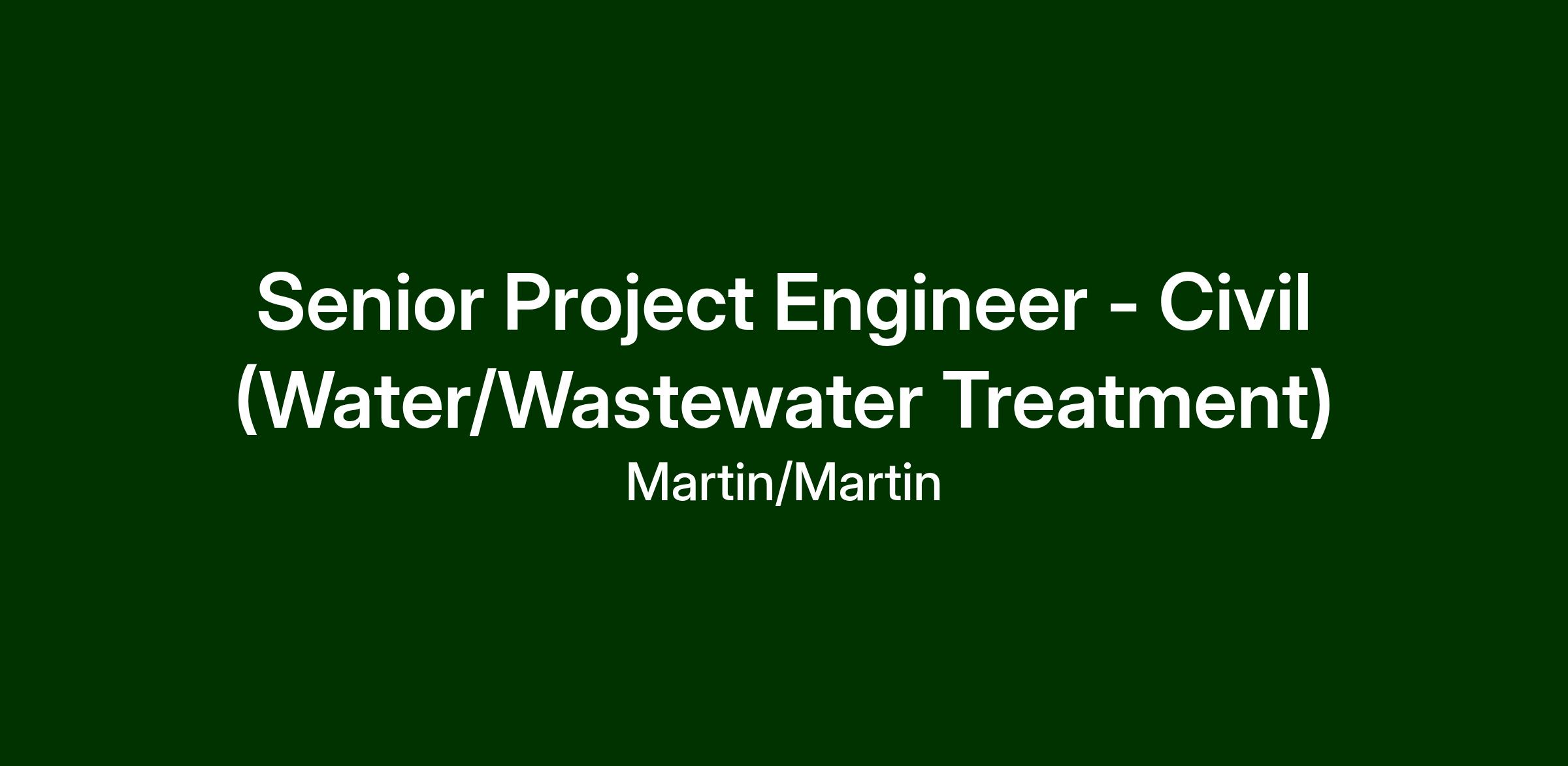 Martin/Martin, Inc. is looking for a senior project engineer/manager to join our Civil Engineering Group in our Lakewood, Colorado office This senior-level engineer will primarily be focused on water and wastewater projects, including treatment for projects located in Colorado, the Southwest, across the U.S. and in international locations.