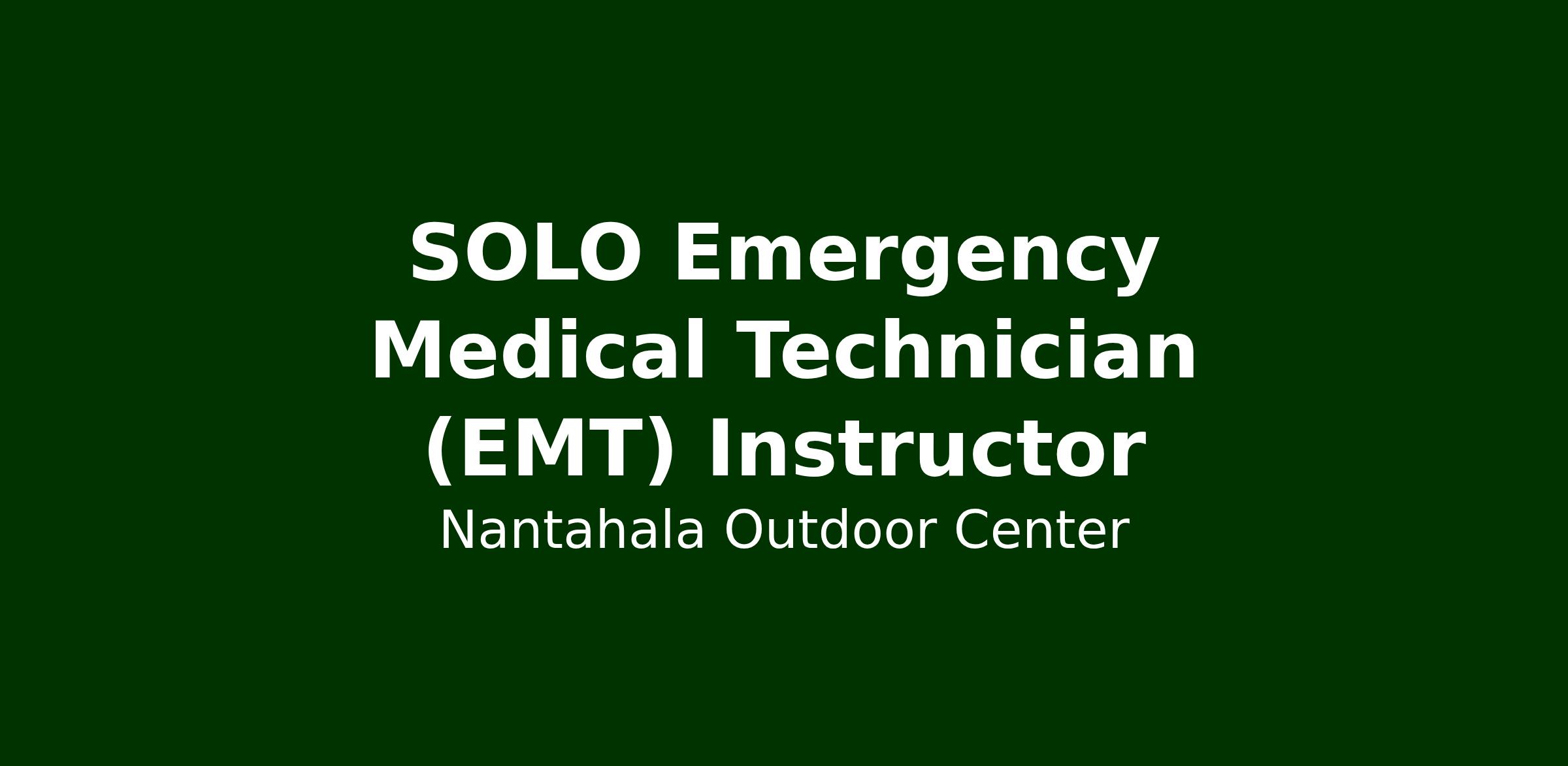 SOLO Instructors conduct courses in the fields of wilderness medicine, CPR, first aid, wilderness survival, and emergency medicine. The primary responsibility of EMT instructors is to teach Emergency Medical Technician (EMT) courses. Instructors may also instruct Emergency Medical Responder (EMR), Basic Life Support (BLS), EMT Refresher, CPR, First Aid, or wilderness medicine as needed. Instructors are responsible for preparing and delivering lectures, leading, and moderating classroom discussions, running hands-on scenarios, and administering and grading examinations and practical assessments. The instructor is expected to provide positive student interactions/experiences and to take all precautions to keep guests and other instructors prepared and safe.