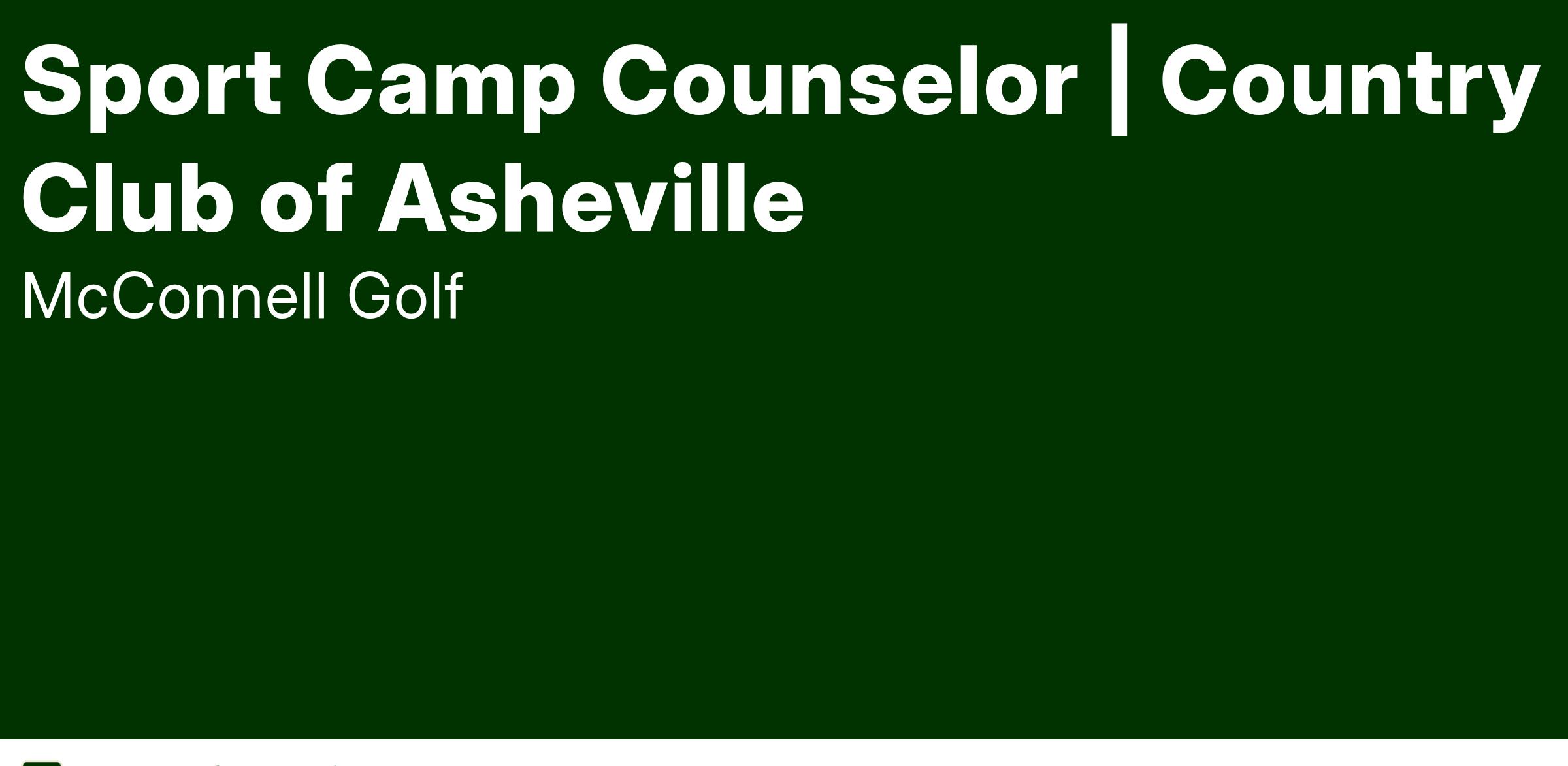 Country Club of Ashevile is look for an enthuisatic Sports Camp Counselor to join our team. This person should enjoy working in a team environment, show extraordinary guest service, and enjoy working with children in a sports and recreation enviroment.