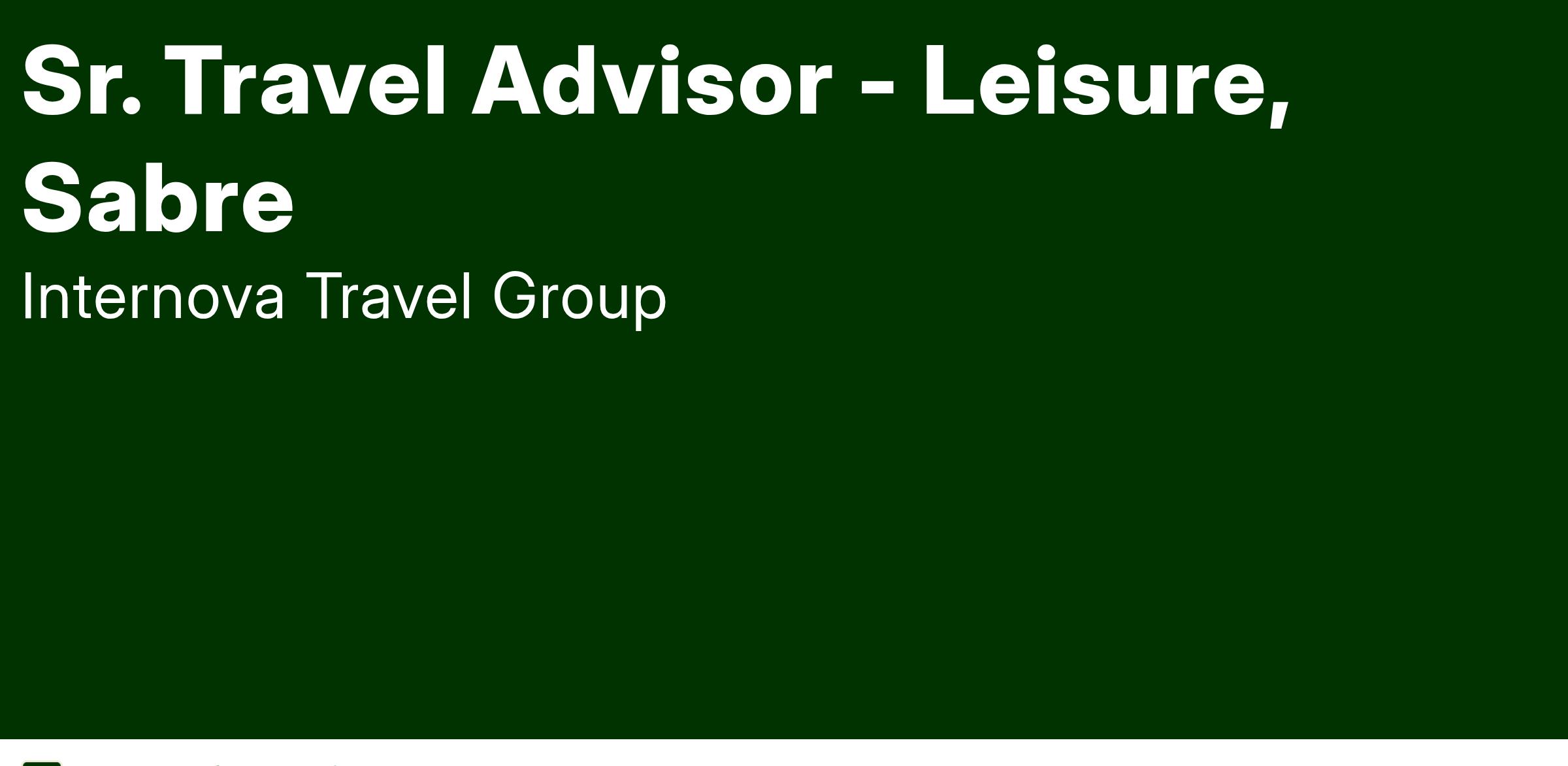 Internova Travel Group is an Equal Opportunity Employer. We make employment decisions without regard to age, race, religion, national origin, gender, disability, veteran status, genetic information, sexual orientation and gender identity or any other protected class.