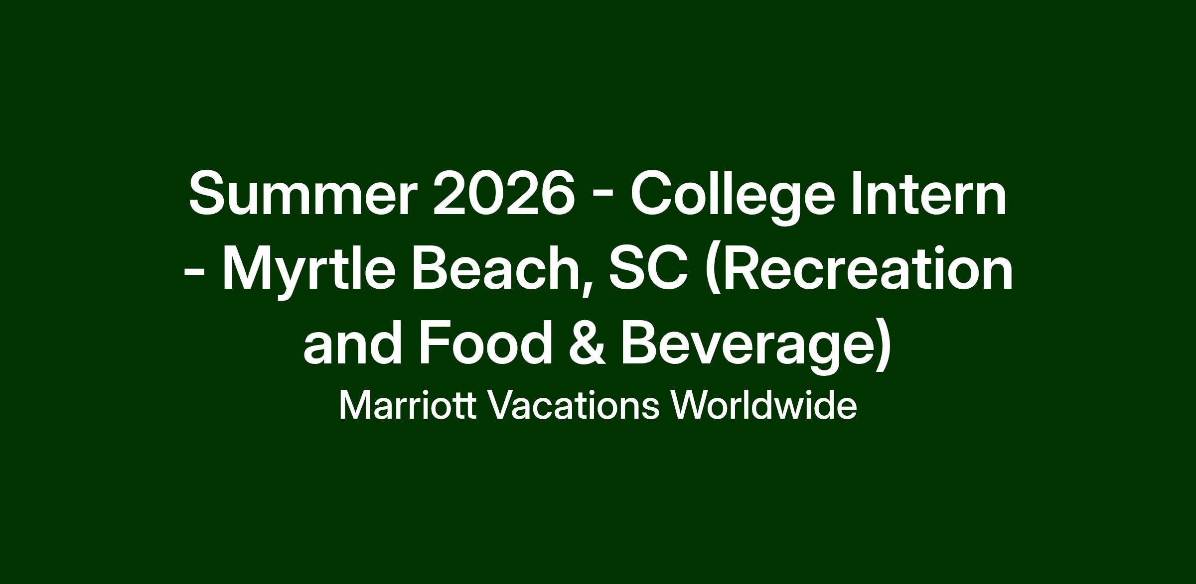 Interns who successfully complete the program will receive priority consideration for future career opportunities within Marriott Vacations Worldwide.