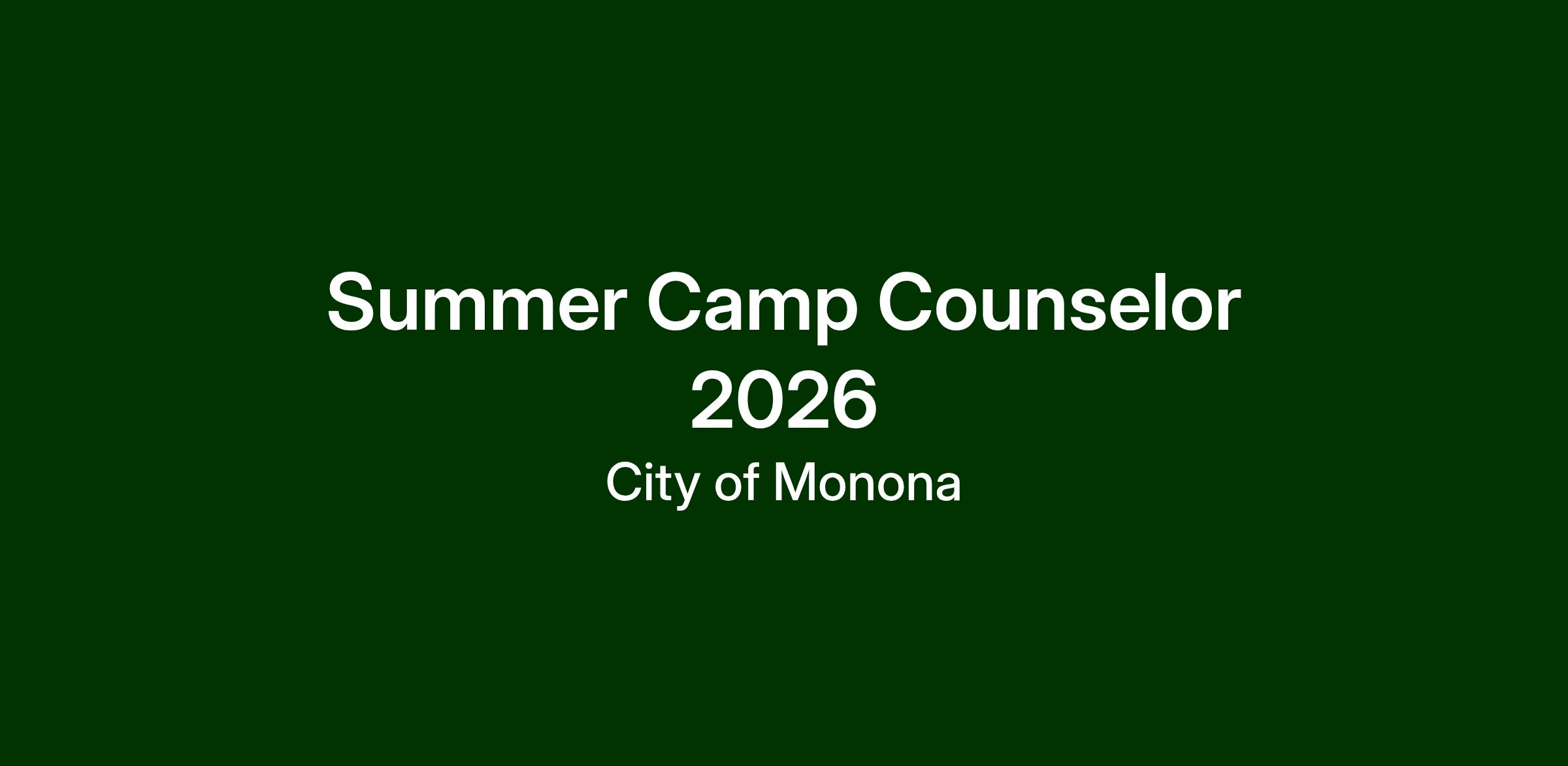 Monona Parks & Recreation offers a full-day summer camp - MPR - GO! (formerly Camp Winnequah) for children in grades 4K-4. While utilizing outdoor spaces in Monona parks, Camp Winnequah counselors oversee groups participating in program activities and ensure that campers create lasting memories and friendships. Duties include active supervision of children, leading groups in activities, behavioral management, leading "counselors-in-training" (CITs), maintaining safety, and lesson planning. All applicants should be interested in working with children of all ages and possess maturity, flexibility, strong work ethic and dependability, and the ability to have fun while working.