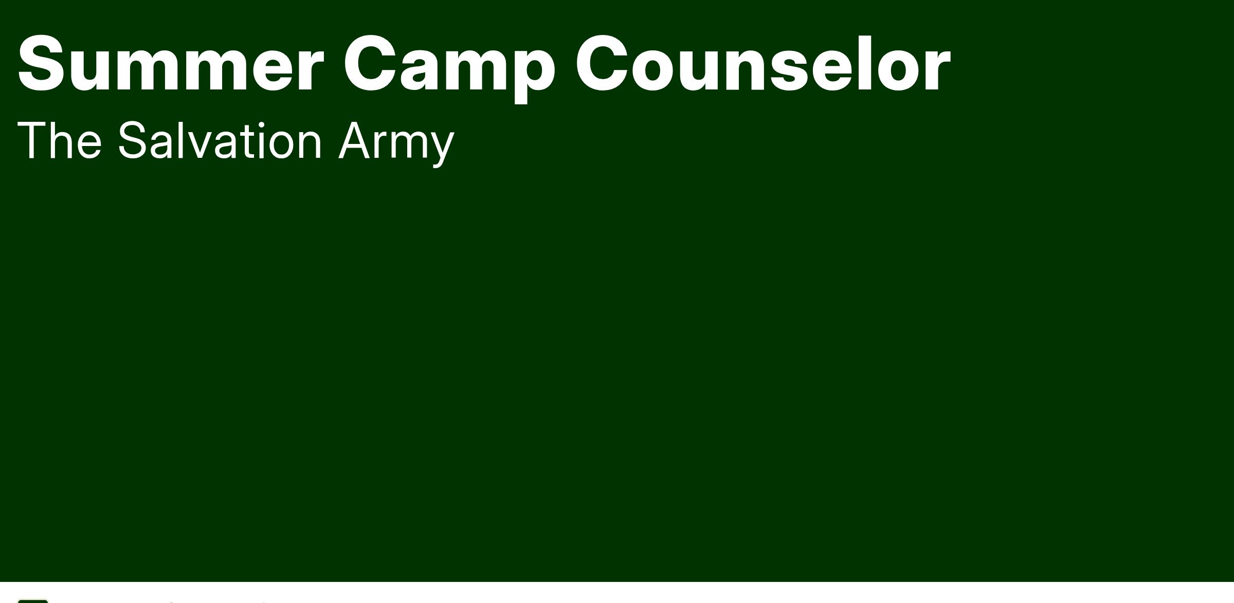 Under the leadership of the Summer Camp Supervisor and FYD Managers, this position is responsible for providing a safe, caring, and enriching learning environment for children enrolled in the Salvation Army Kroc Centerβs summer camp. Counselors are responsible for leading groups of students in assigned activities, safeguarding students, and implementing disciplinary procedures. Counselors are responsible for adequately conducting themselves by setting an example for children, parents/guardians, and co-workers in alignment with The Salvation Armyβs core values.