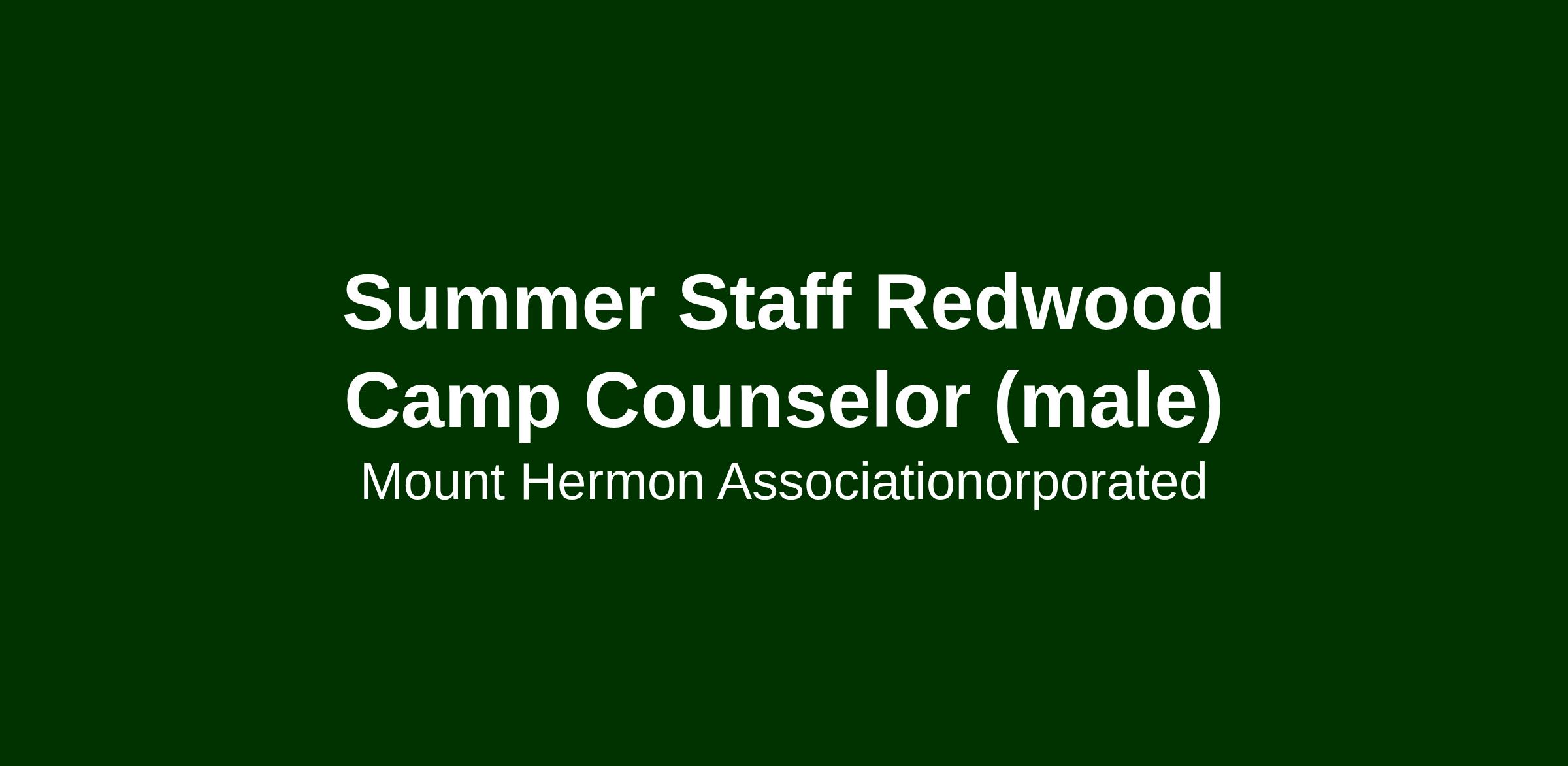 The Redwood Camp (“RWC”) Counselor is a Ministerial position. Ministerial staff render their work, stewardship, relationships and behavior as evidence of being followers of Jesus Christ while embracing and affirming Mount Hermon Association, Inc.’s (“MHA”) mission, vision and beliefs. They are responsible for defining, cultivating and leading MHA’s Christian community, conference programs, and retreats.
