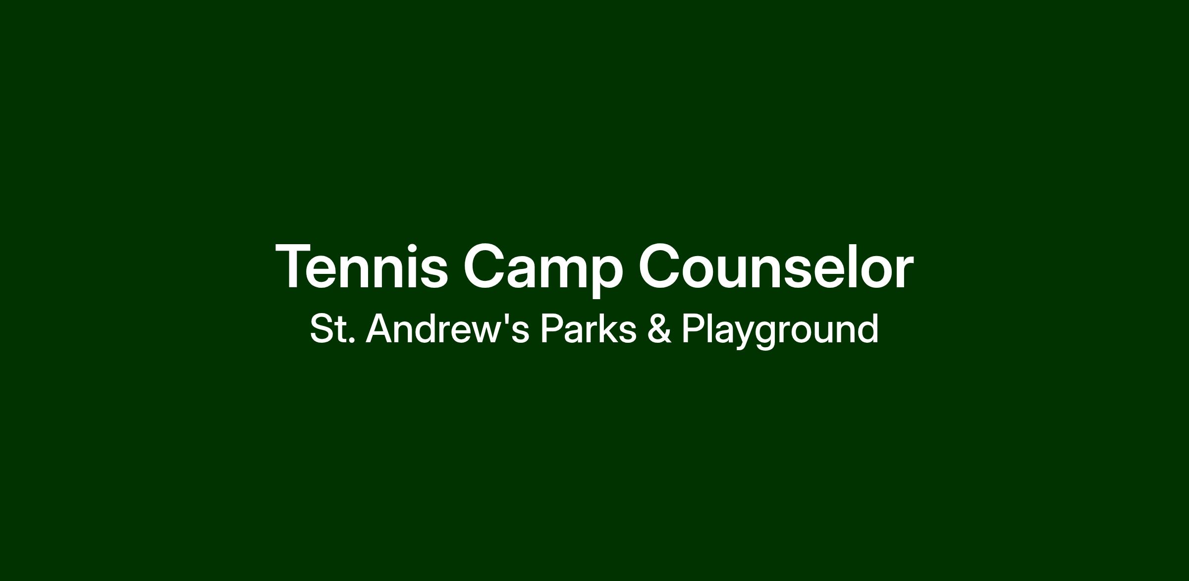 St. Andrew's Parks and Playground, is searching for Tennis Camp Counselors. The ideal teammate is passionate about empowering others and is excited to be part of a team that has enriched lives through parks, recreation, and wellness for over 80 years!