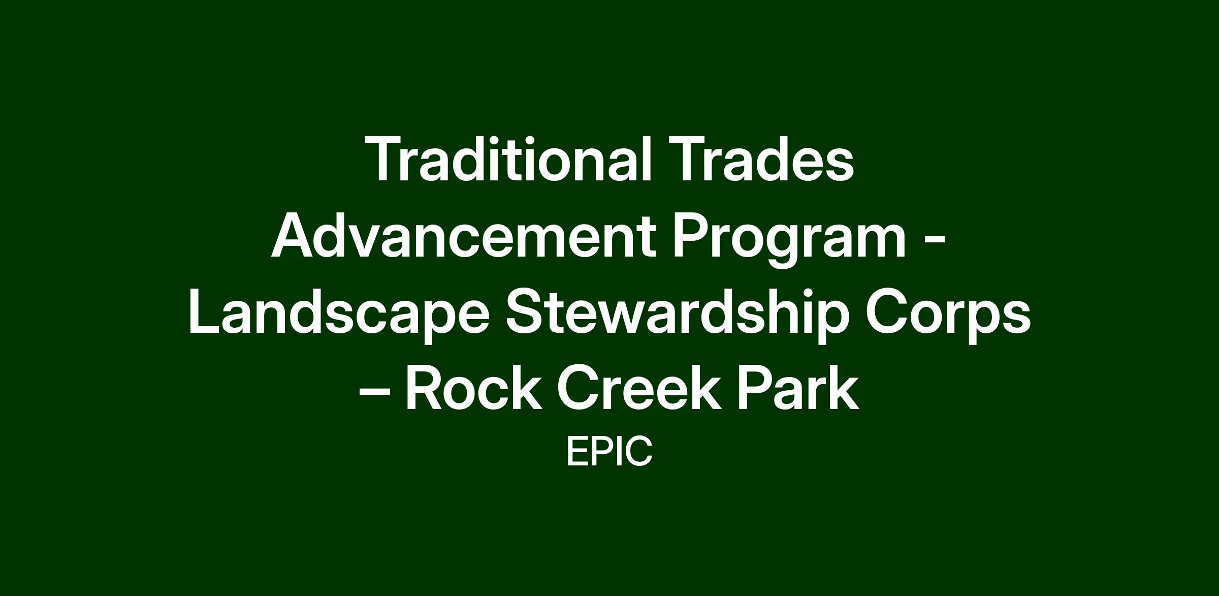 The Traditional Trades Advancement Program-Landscape Stewardship Corps is intended for enthusiastic individuals who possess an interest in gaining experience in the field of landscape preservation or horticulture. No education or experience in the field is necessary.