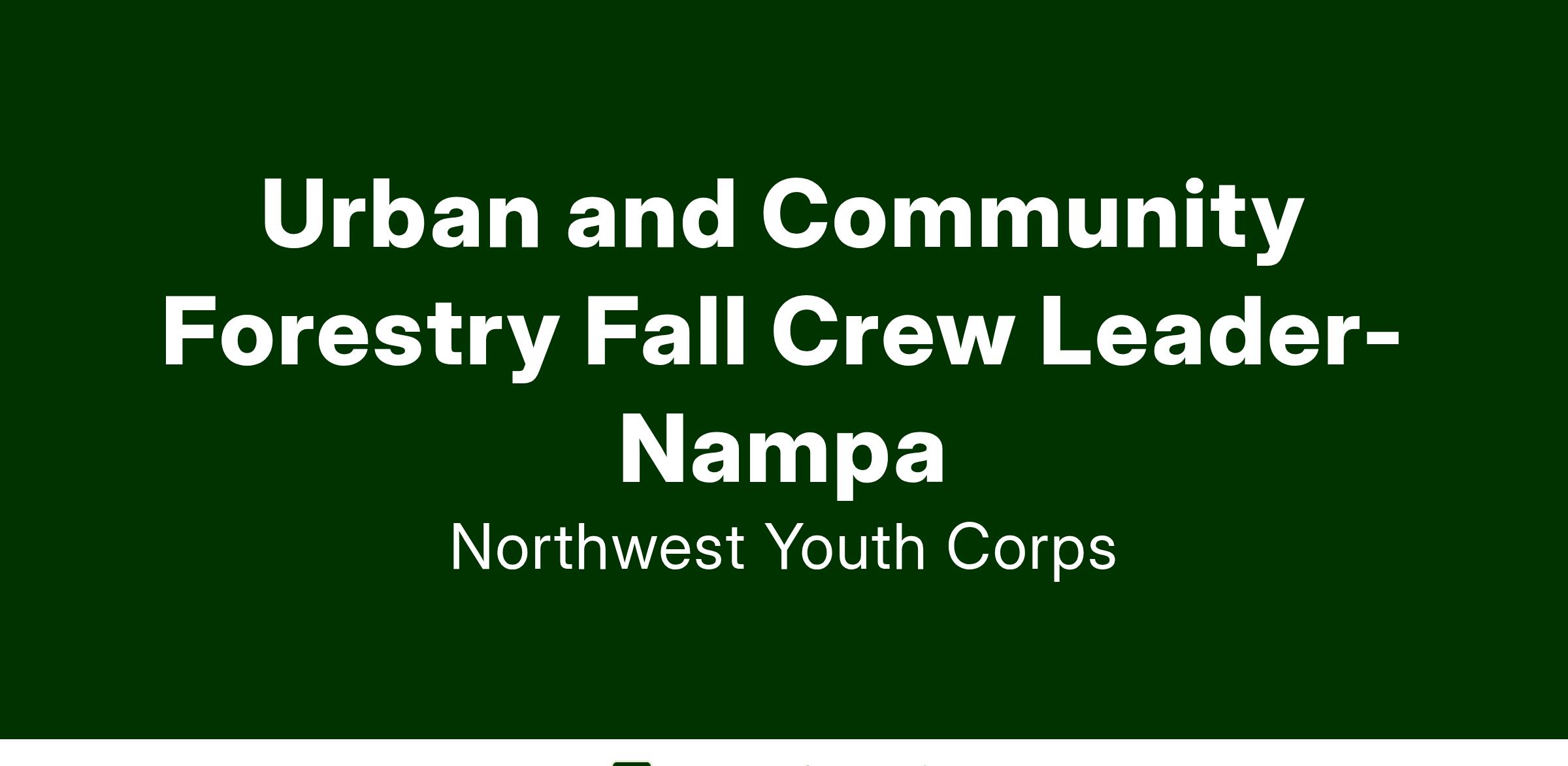 POSITION: Young Adult Crew Leader, Urban and Community Forestry.