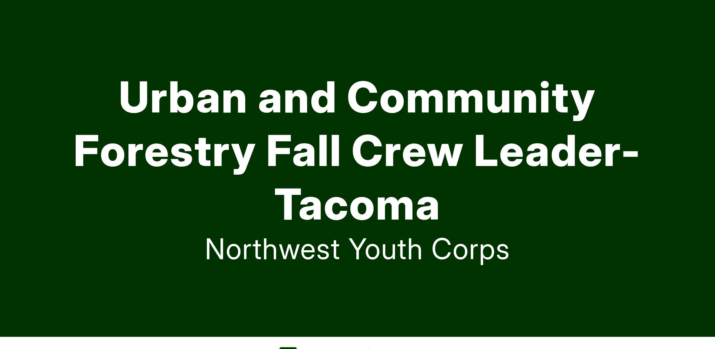 POSITION: Young Adult Crew Leader, Tacoma Urban and Community Forestry.
