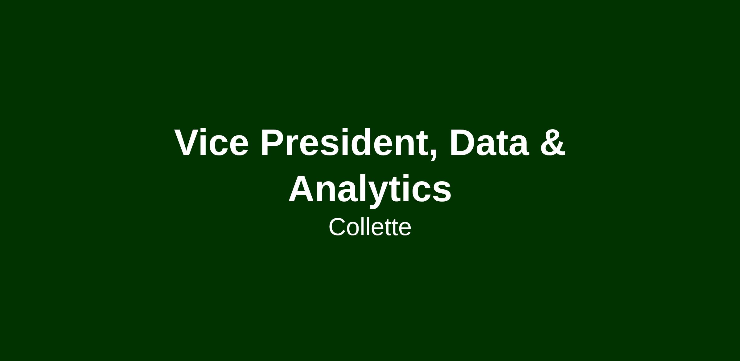 The Vice President of Data & Analytics will lead Collette’s enterprise wide data, analytics, and business intelligence strategy, enabling data driven decision making entire organization. This role combines strategic leadership, modern data platform ownership, and business partnership to transform data into trusted, scalable, and actionable insights that drive growth, efficiency, and exceptional traveler experiences.
