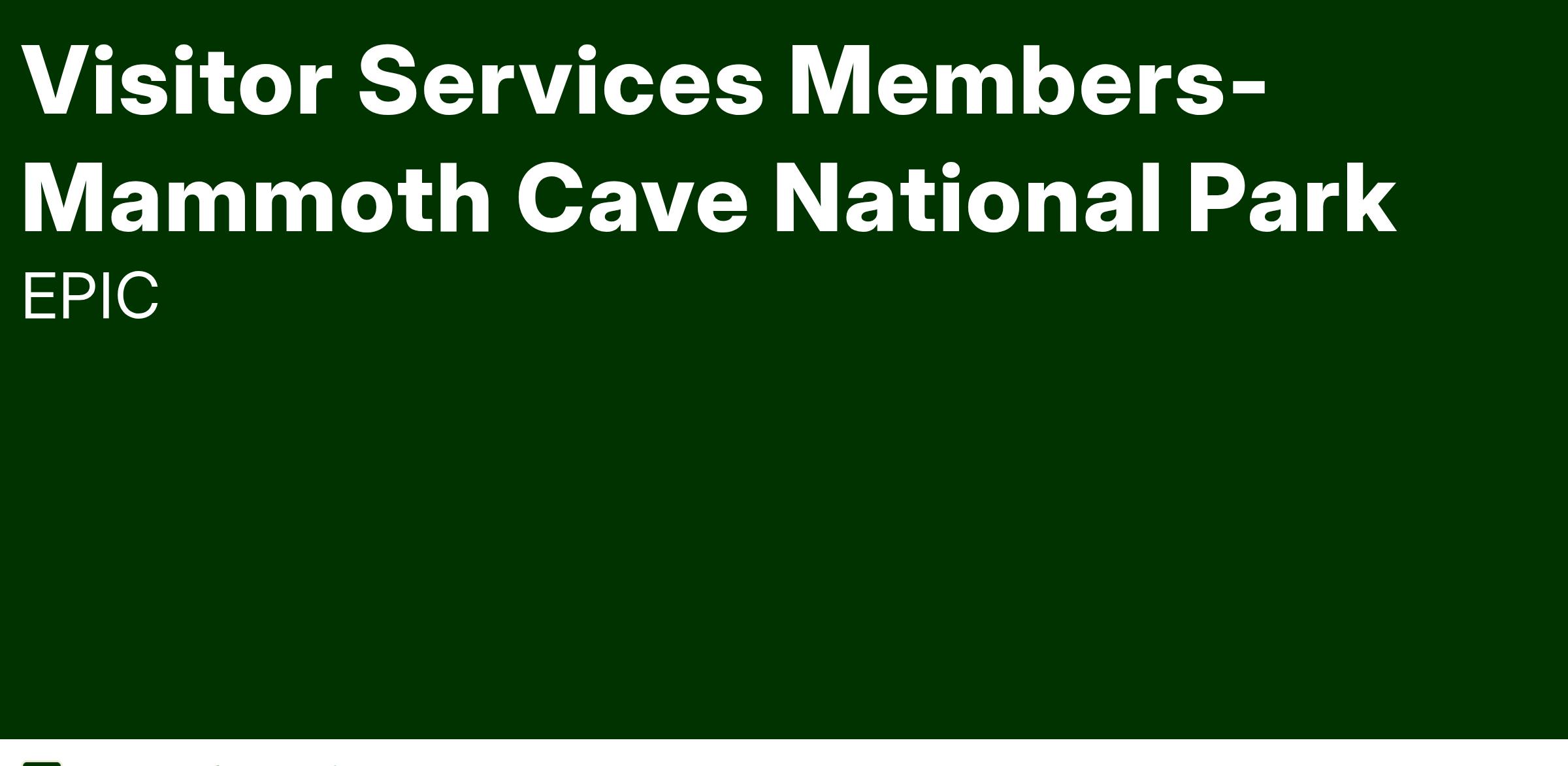 Position Overview: The primary purpose of the Division of Interpretation is to provide formal programming to the public to provide visitors with an understanding of park resources in such a way to forge meaningful connections of experience during their visit. The service member will work with visitors from all over the world and across all age spectrums. Most of the work will be in a cave environment, with some on the surface in order to fully immerse visitors within the resources available. Primary duties of the position include: