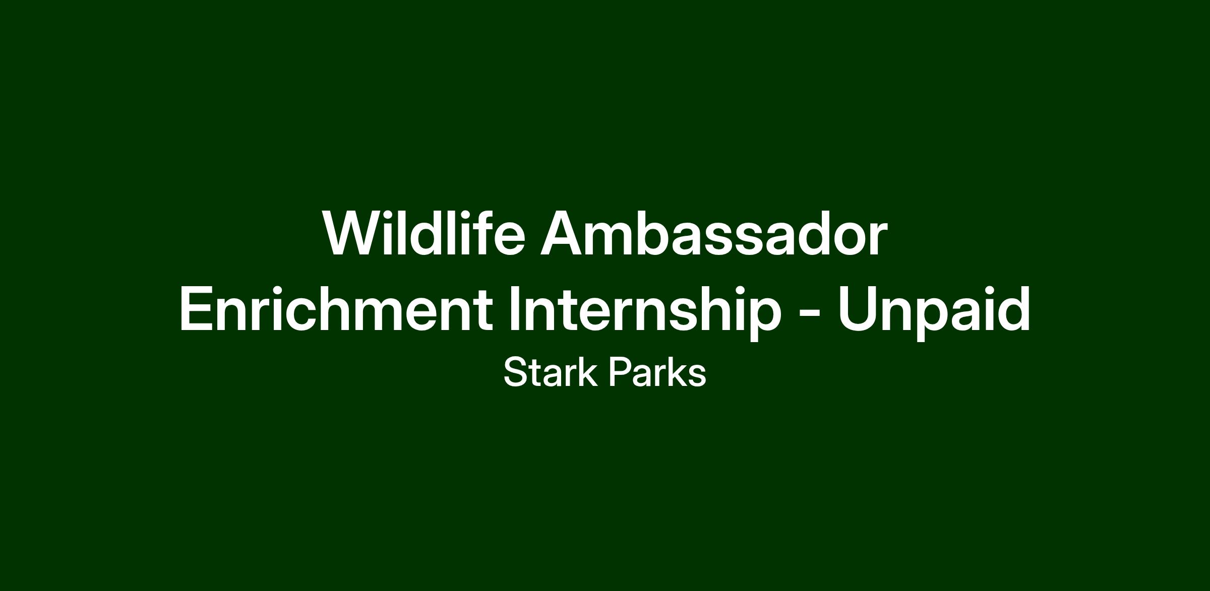 The Stark County Park District is currently seeking unpaid, part time Wildlife Ambassador Enrichment interns to further their education in animal enrichment and experience at our Wildlife Conservation Center. If you're passionate about wildlife animals big and small and wish to gain some hands-on experience in animal care, we're the place for you!